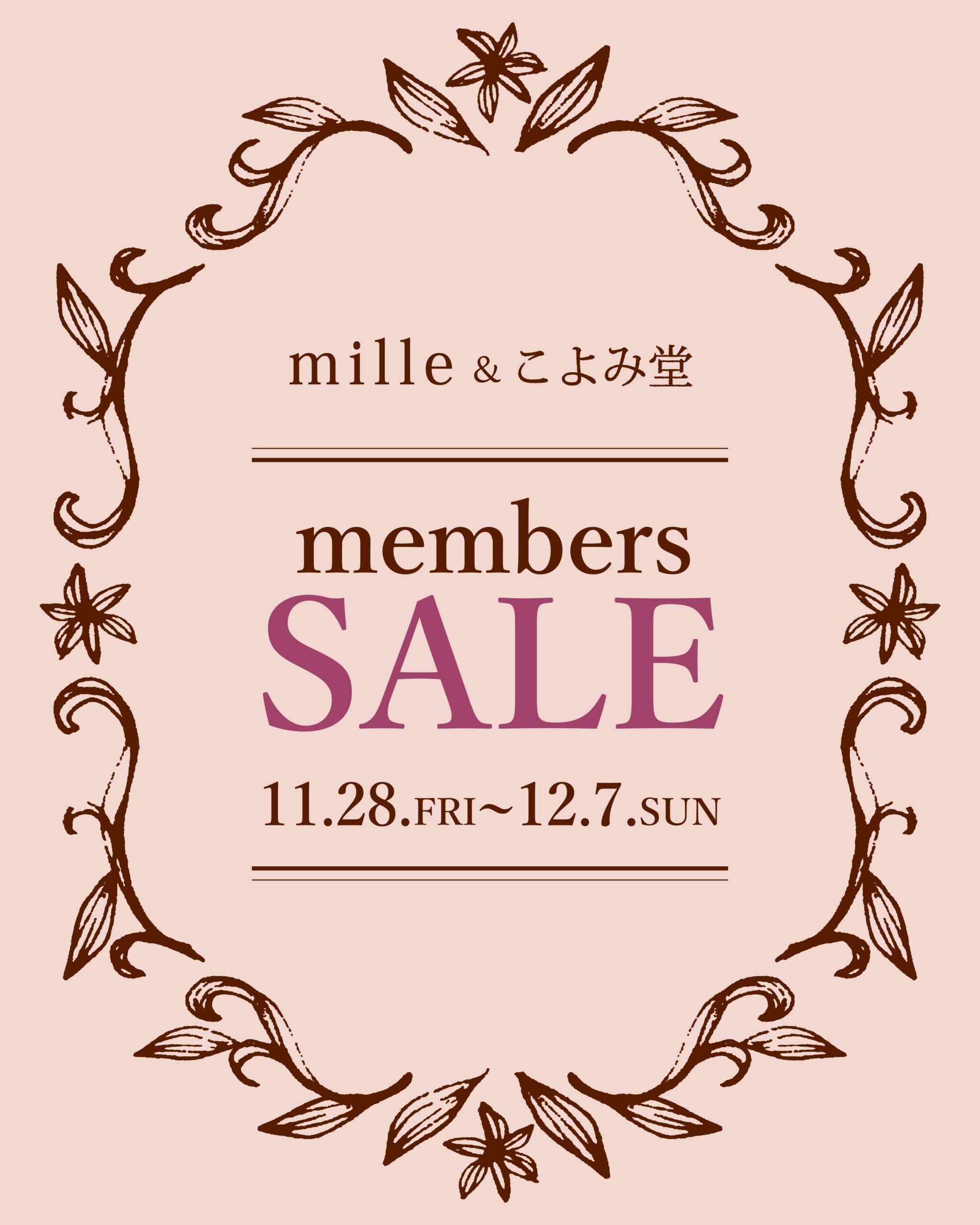 Shop News【お知らせ】mille&こよみ堂members SALEmille&こよみ堂members SALE 11/28(金)~12/7(日)開催決定! ...