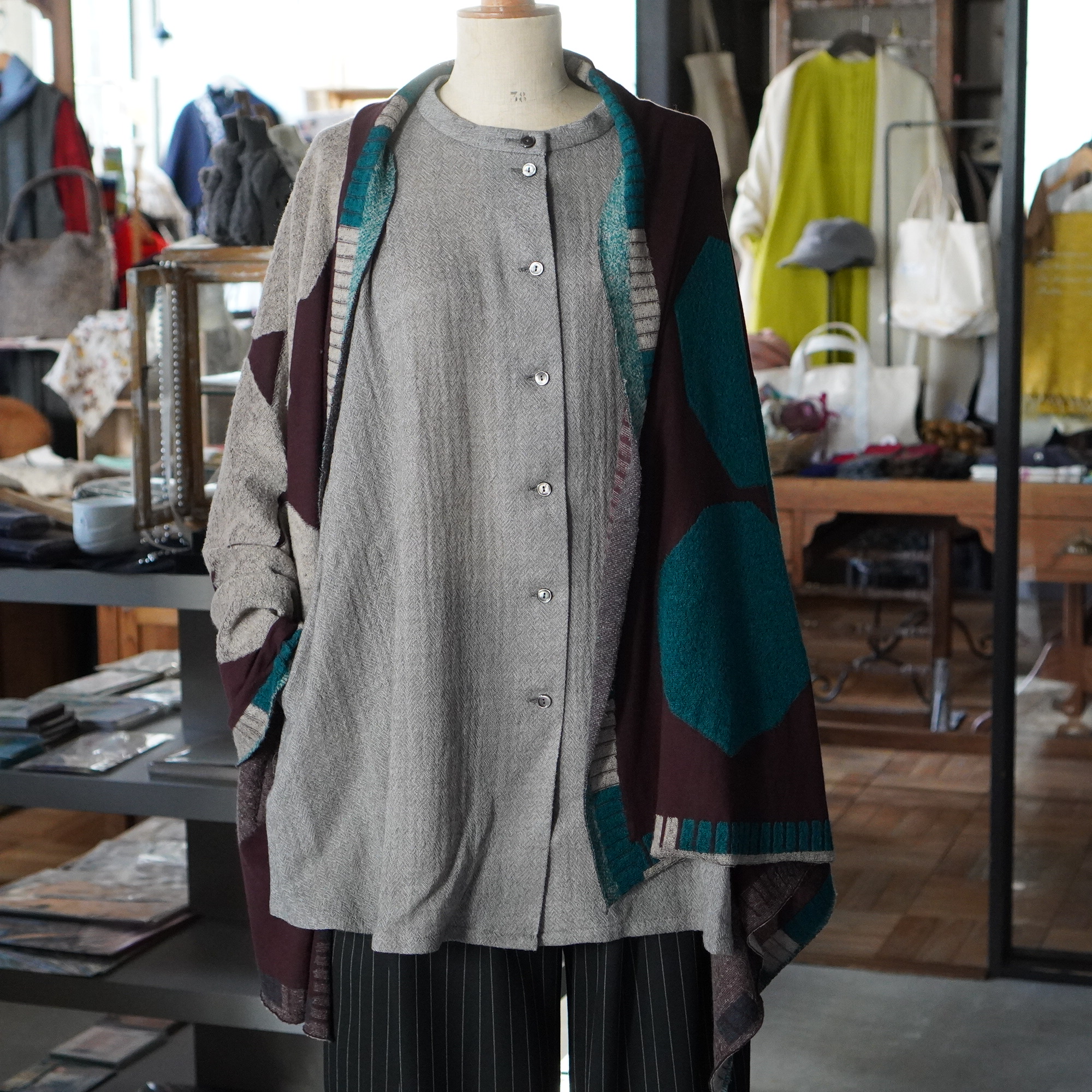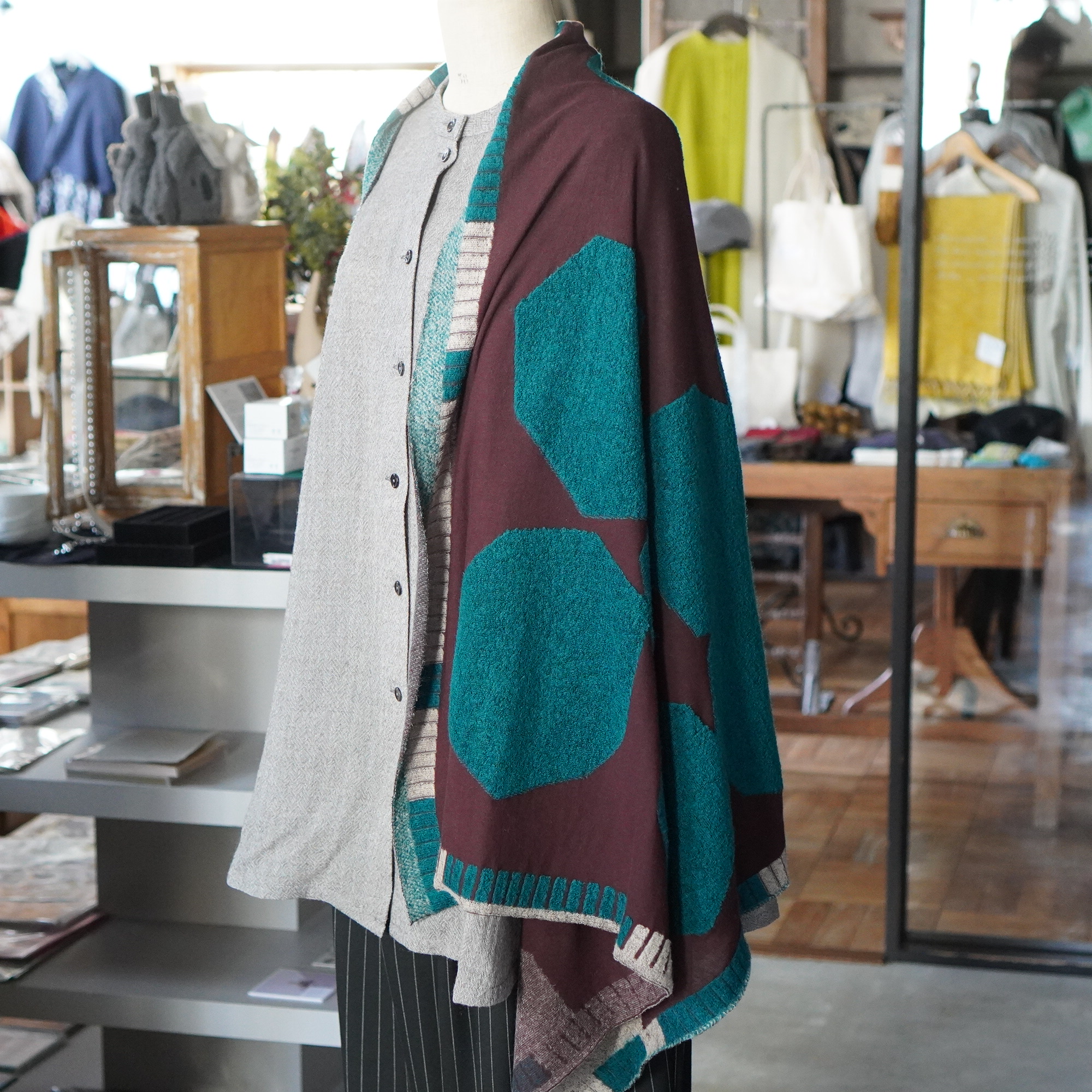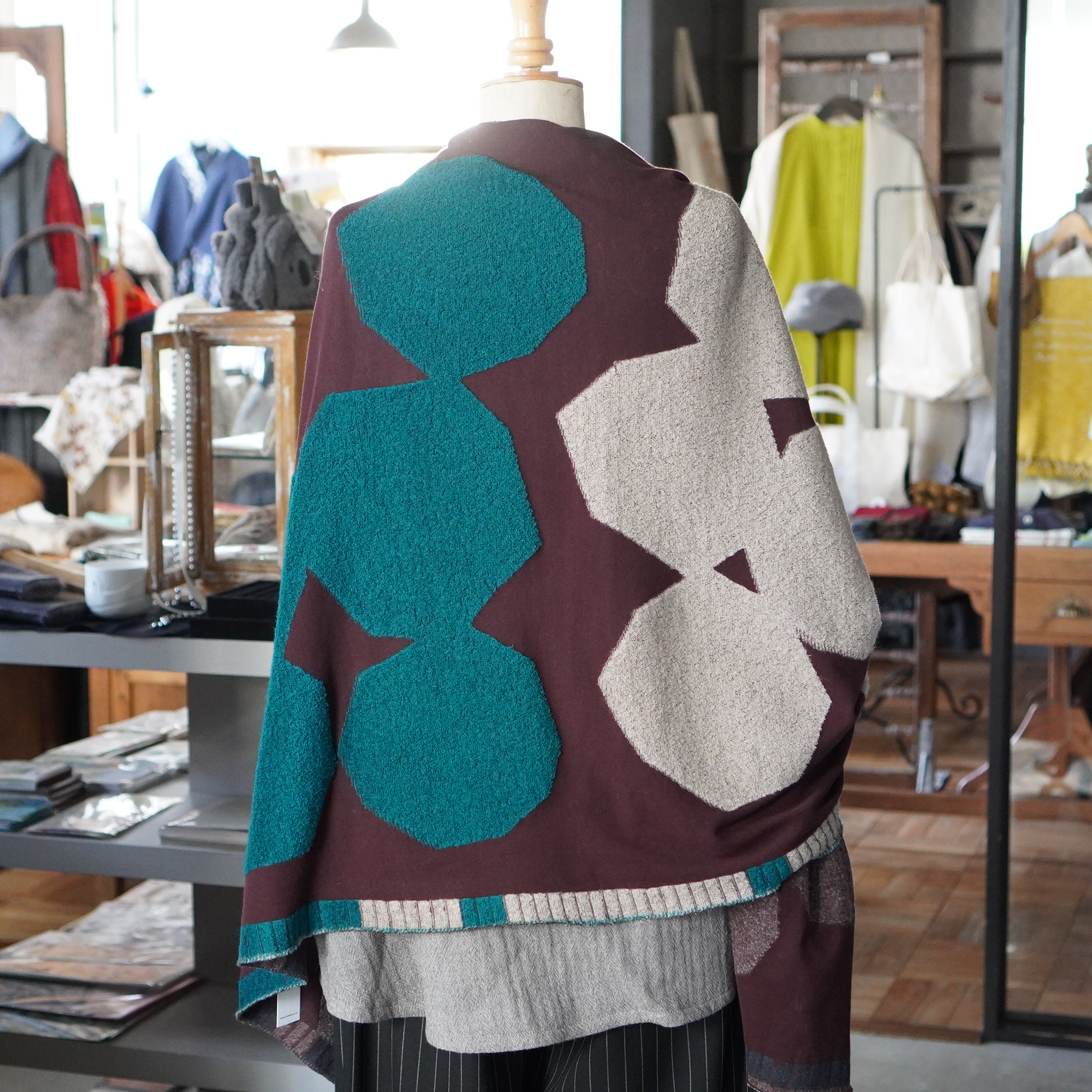 最上川を流れるなかで角が取れしなやかな丸みを帯びていく"石"を表現したテキスタイル。水の中と外を転がる石を、2つの色で対比的に描いており、力強さとやわらかさが同居し、巻くたびに異なる表情を楽しめる配色。軽やかで柔らかな肌触りは、日々の装いになじみ、さりげないアクセントを添えてくれます。