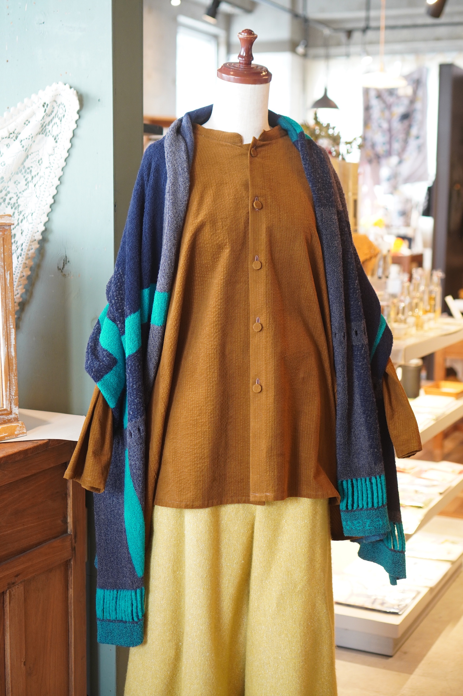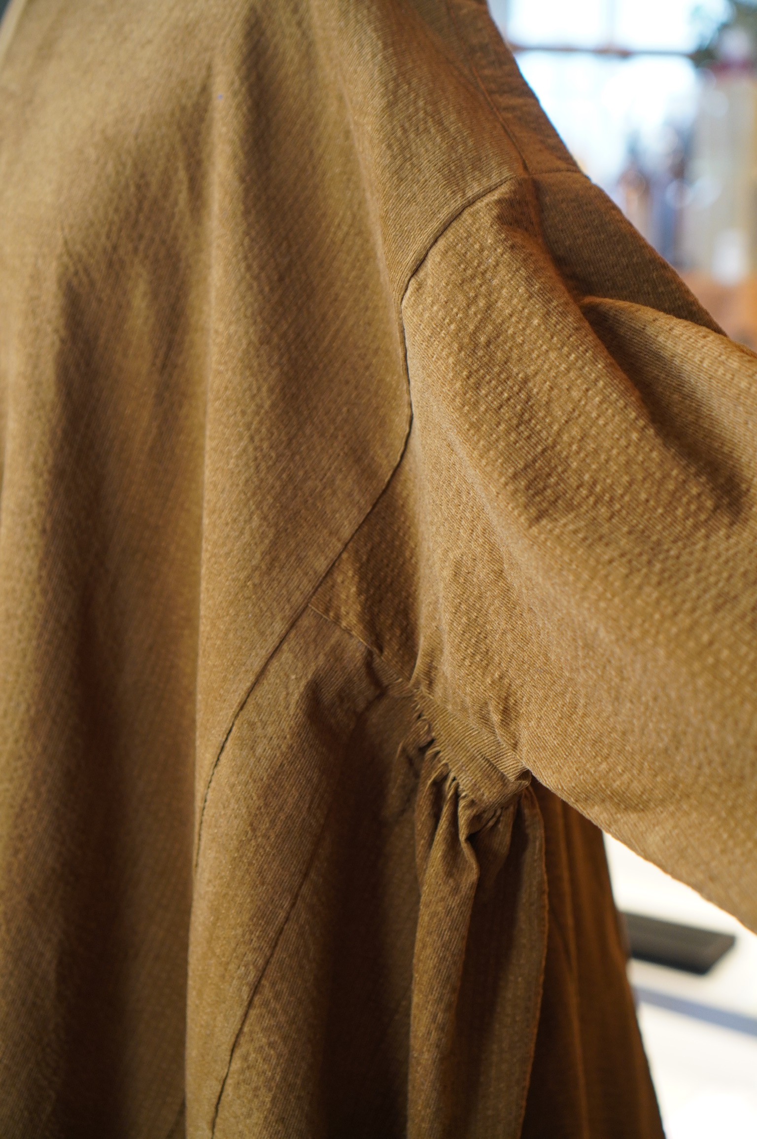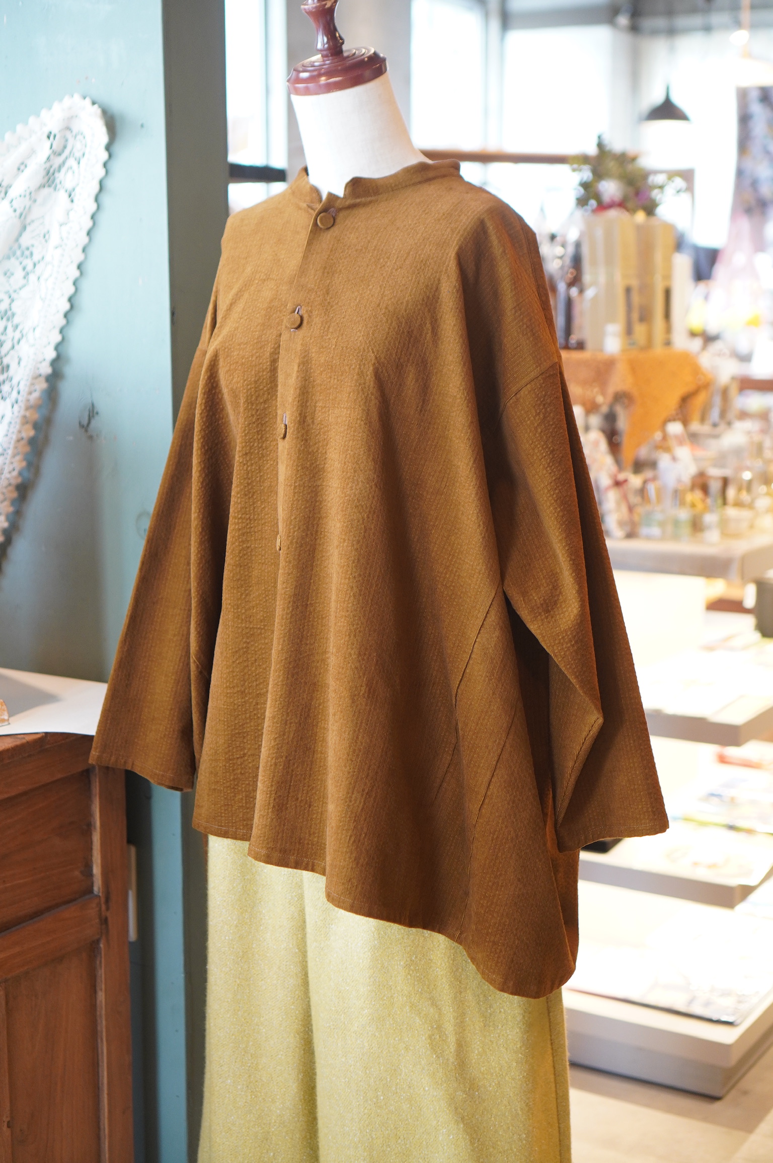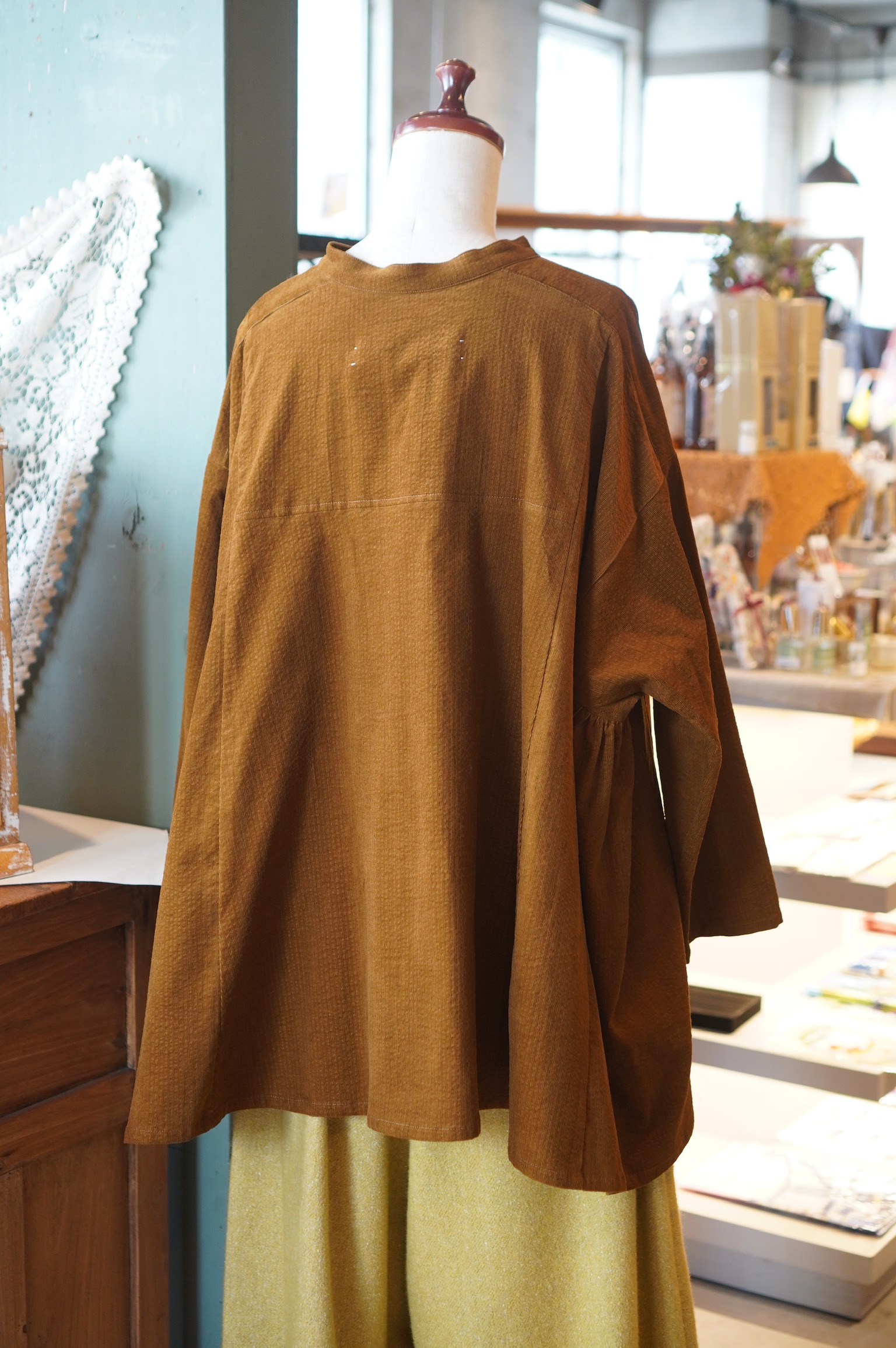 民族衣装をイメージしたブラウス。異なる長方形のパターンを様々に組み合わせ、ギャザーやタック、マチなどの細かなディテールがポイント。ゆったりとしながらも美しいシルエットをお楽しみいただけます。
