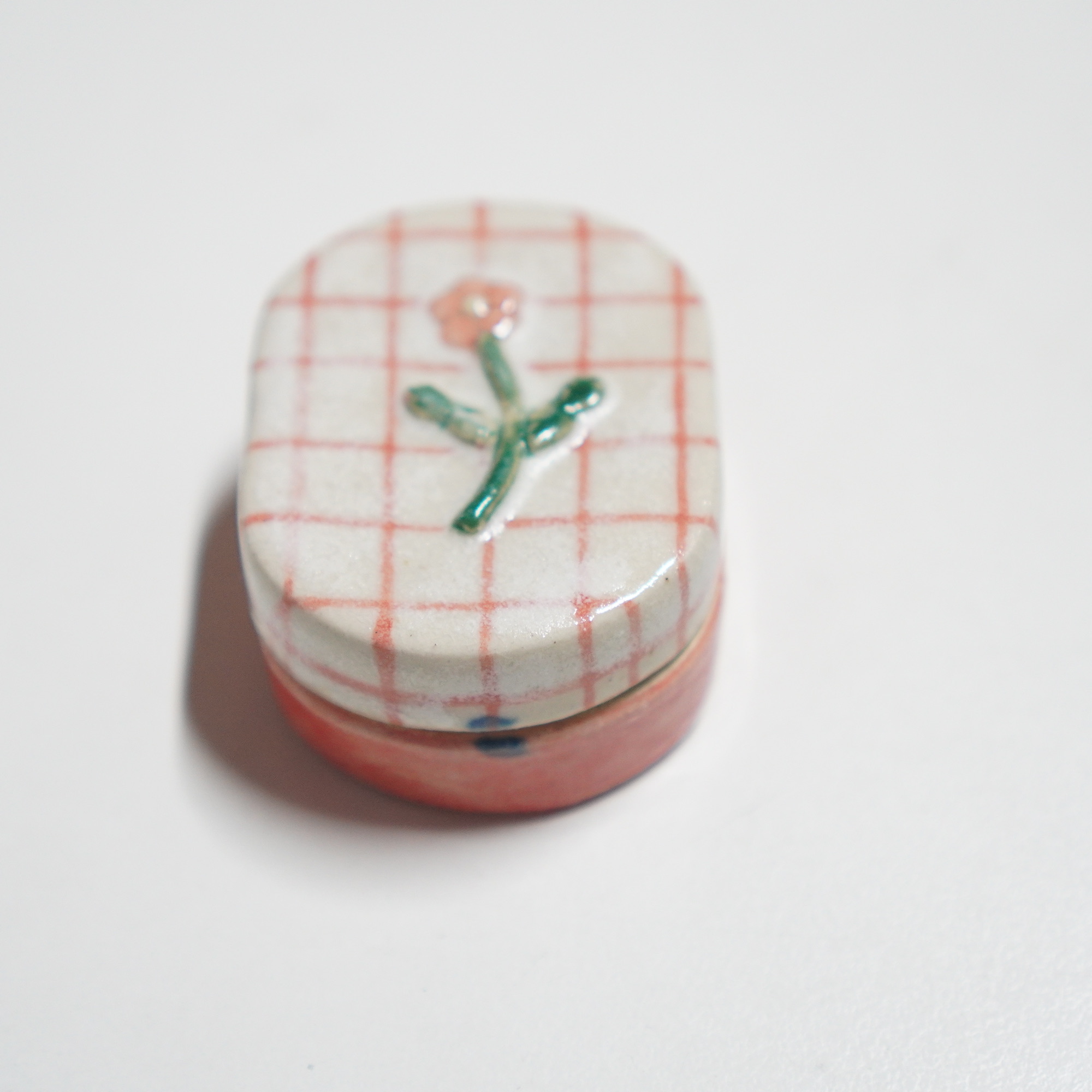 柔らかい色づかいに、ぷっくりとした装飾が魅力的な陶箱。どこかレトロで懐かしさも感じる小箱は、お部屋にちょこんとあるだけでも心躍る愛くるしさ。。。♩スケッチの中から、ときめくものを想い描いて、デザインや配色など試行錯誤しながら、制作されている小渕さんの作品。ついつい開けたくなる、小箱の世界観をお楽しみくださいませ。