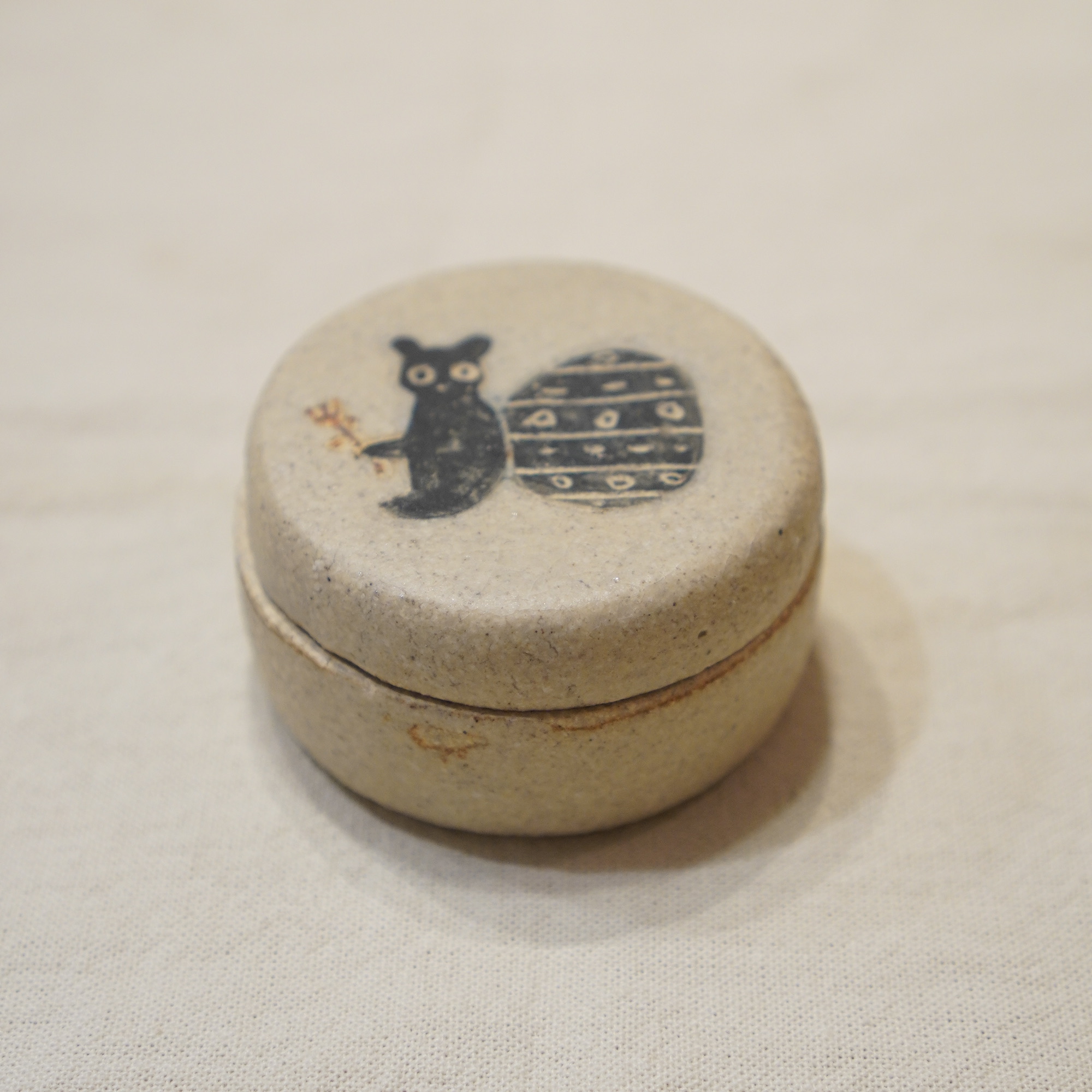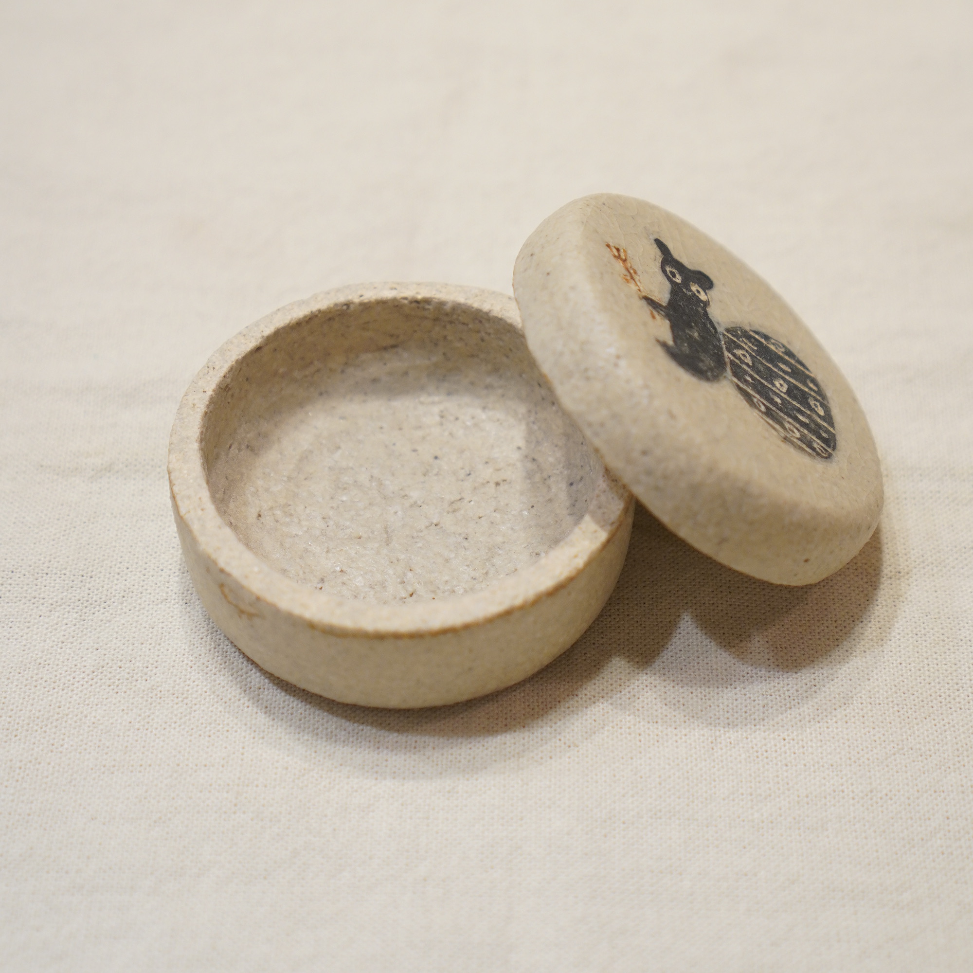なにげない日常にひっそりと寄り添えるような陶器ならではのぬくもりを感じる作品。手仕事から生まれる模様の線、モチーフの表情などひとつひとつ違った風合い。土の素朴なあたたかさが、心にほっこりと癒しを与えてくれます。自然と触れたり、本を読んだり音楽を聴いたり、、、毎日の暮らしの中から生まれたアイディアをカタチにして日々、制作されています。ワクワクした気持ちでまた開けたくなる、お気に入りの小箱が見つかりますように。