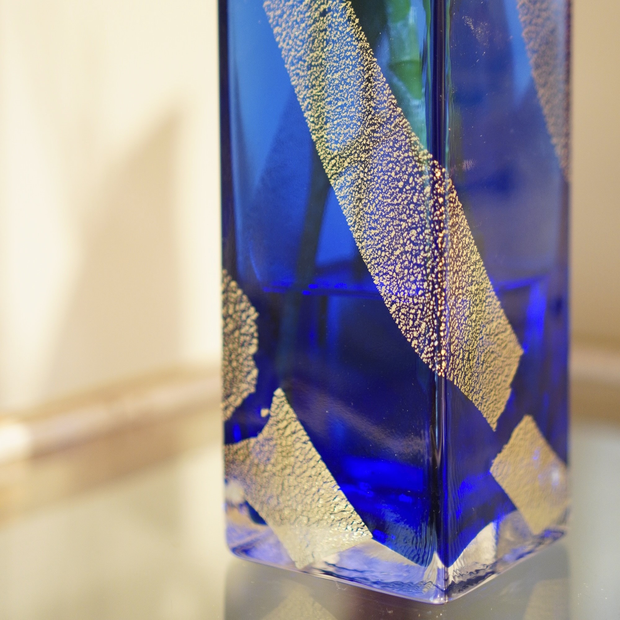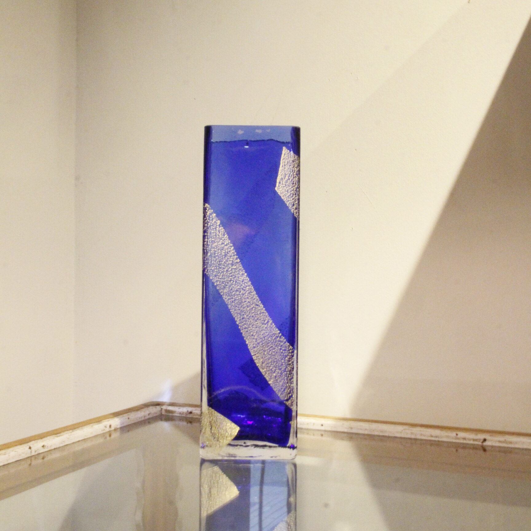 深い青色が美しく特徴的な高級感溢れる花瓶です。枝ものとの相性が良く、縦型のスラっとした高さがポイント!薔薇などの凛としたお花なども上品に生けていただけます。
