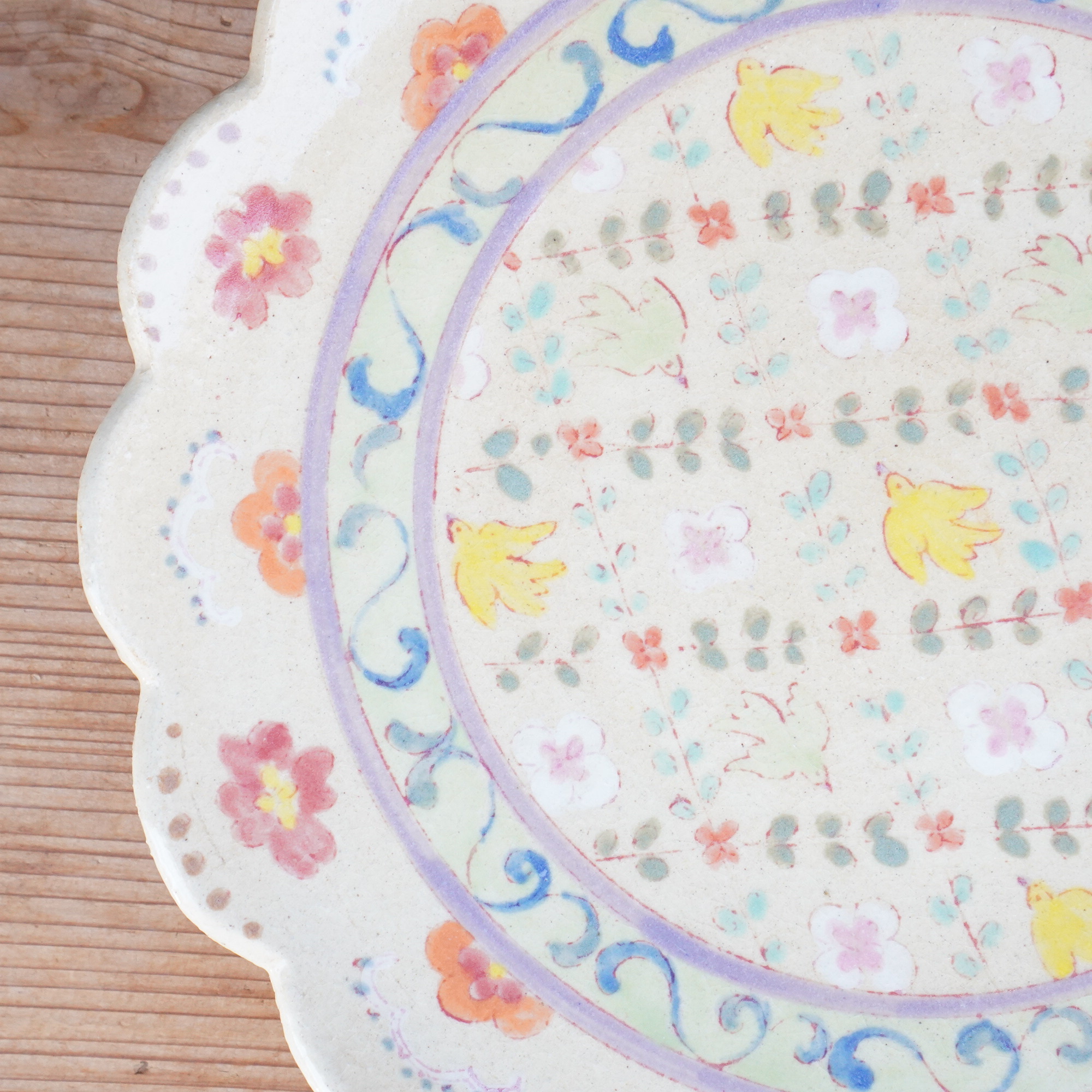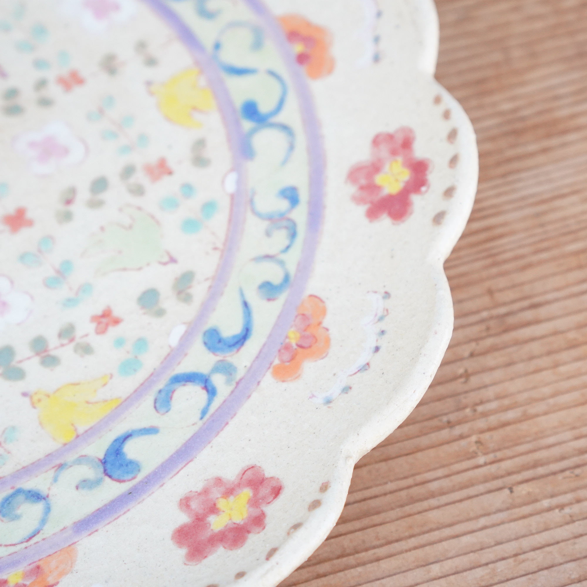 増山 文 - 陵花絵皿 8寸 鳥かごリース