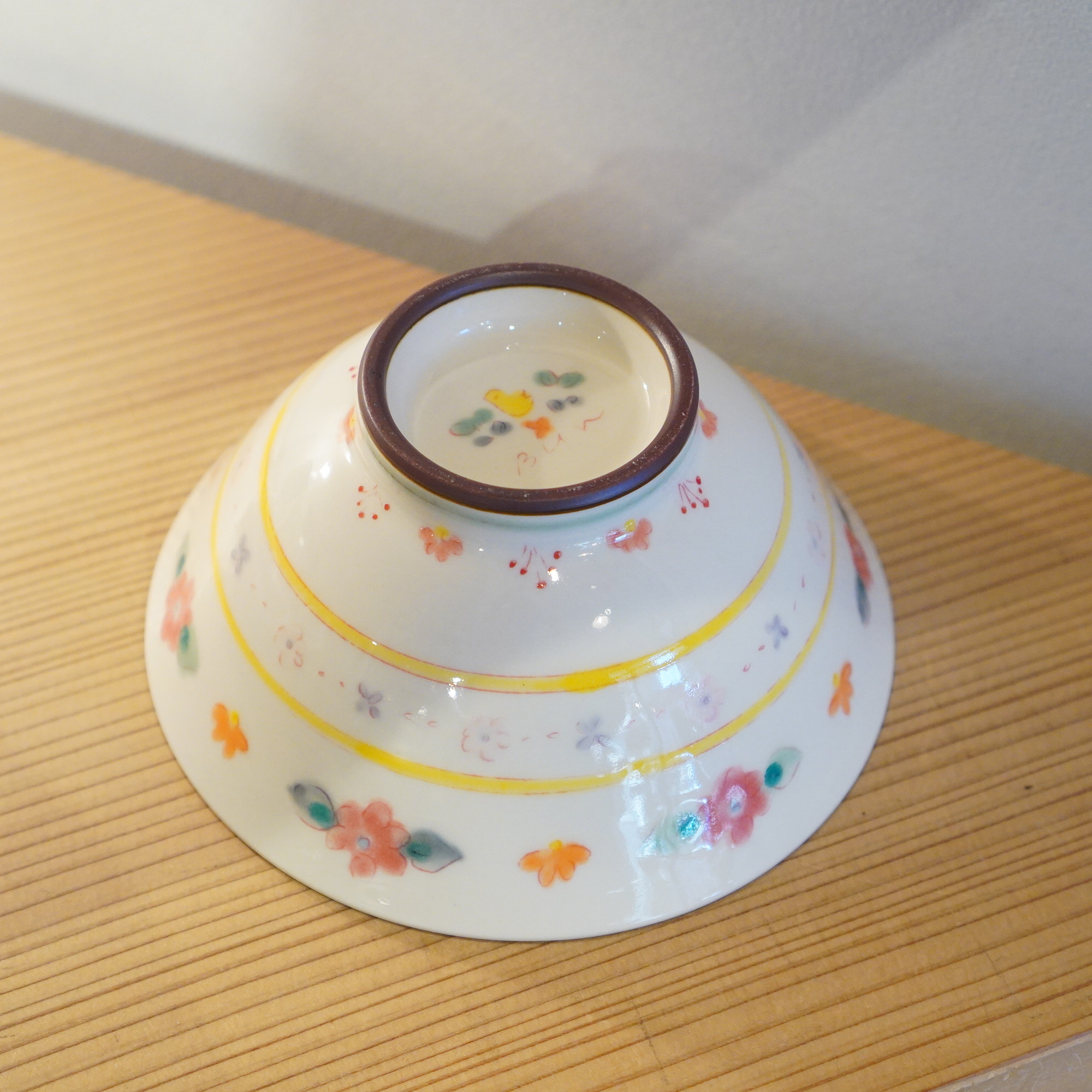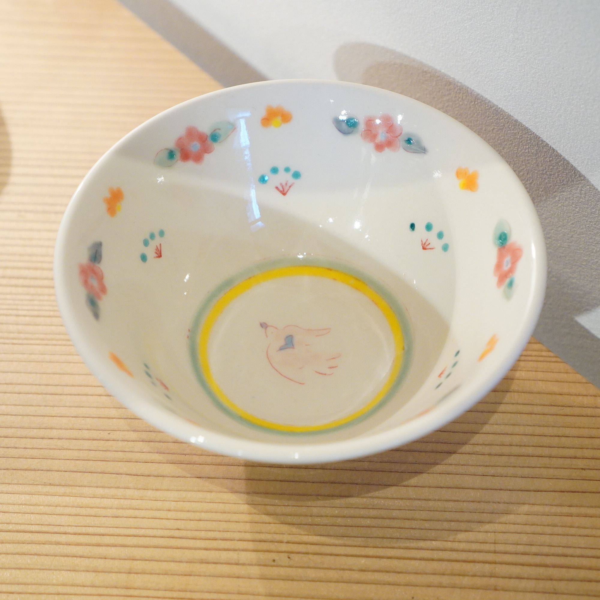増山 文 - ご飯茶碗A 小花とことり