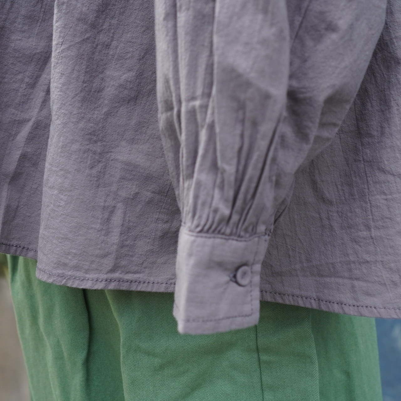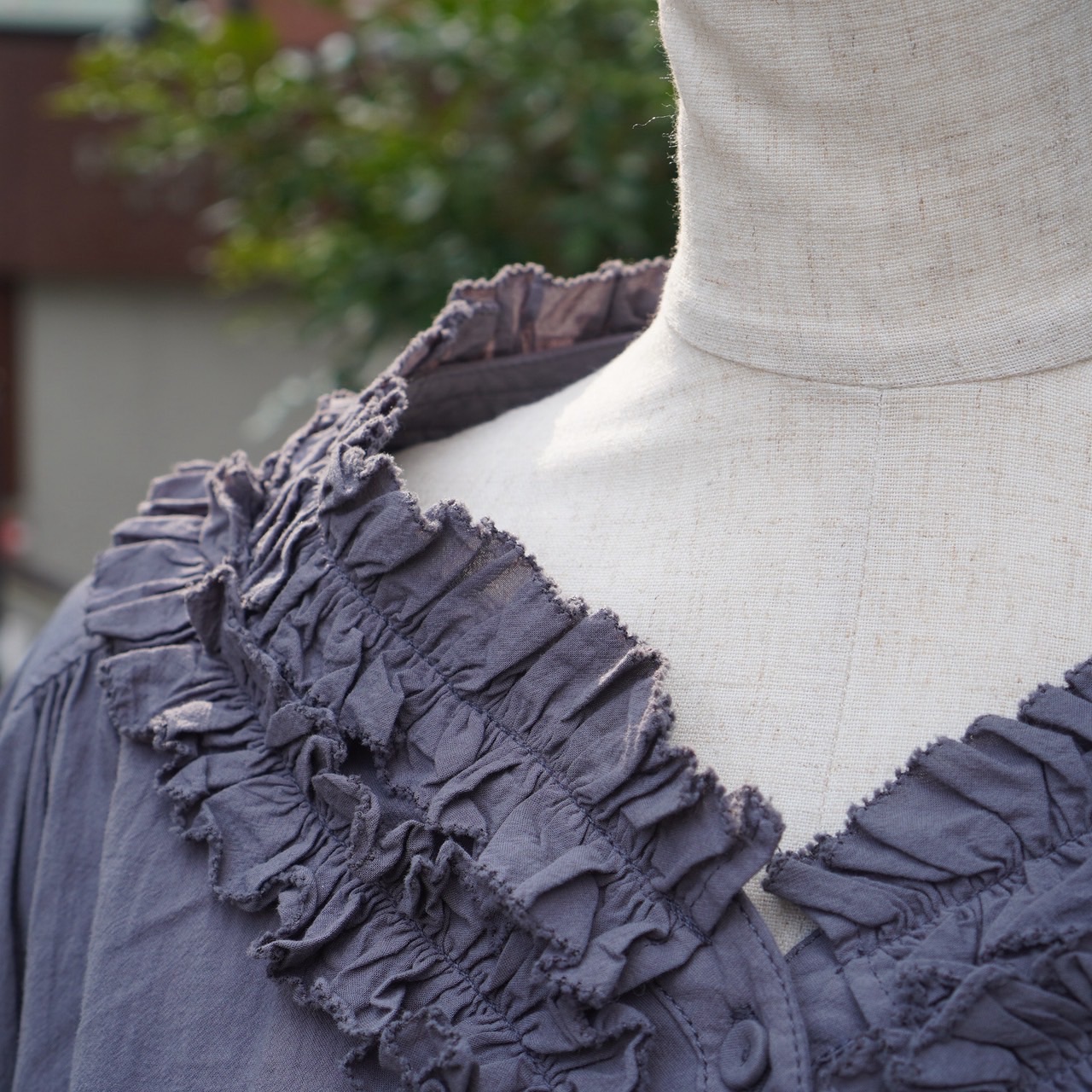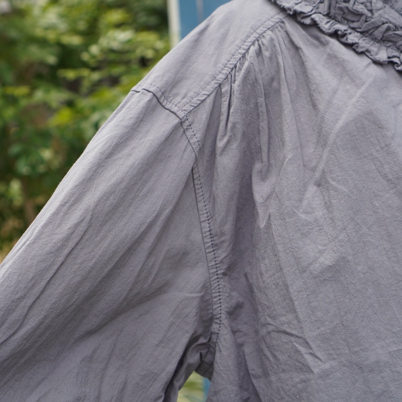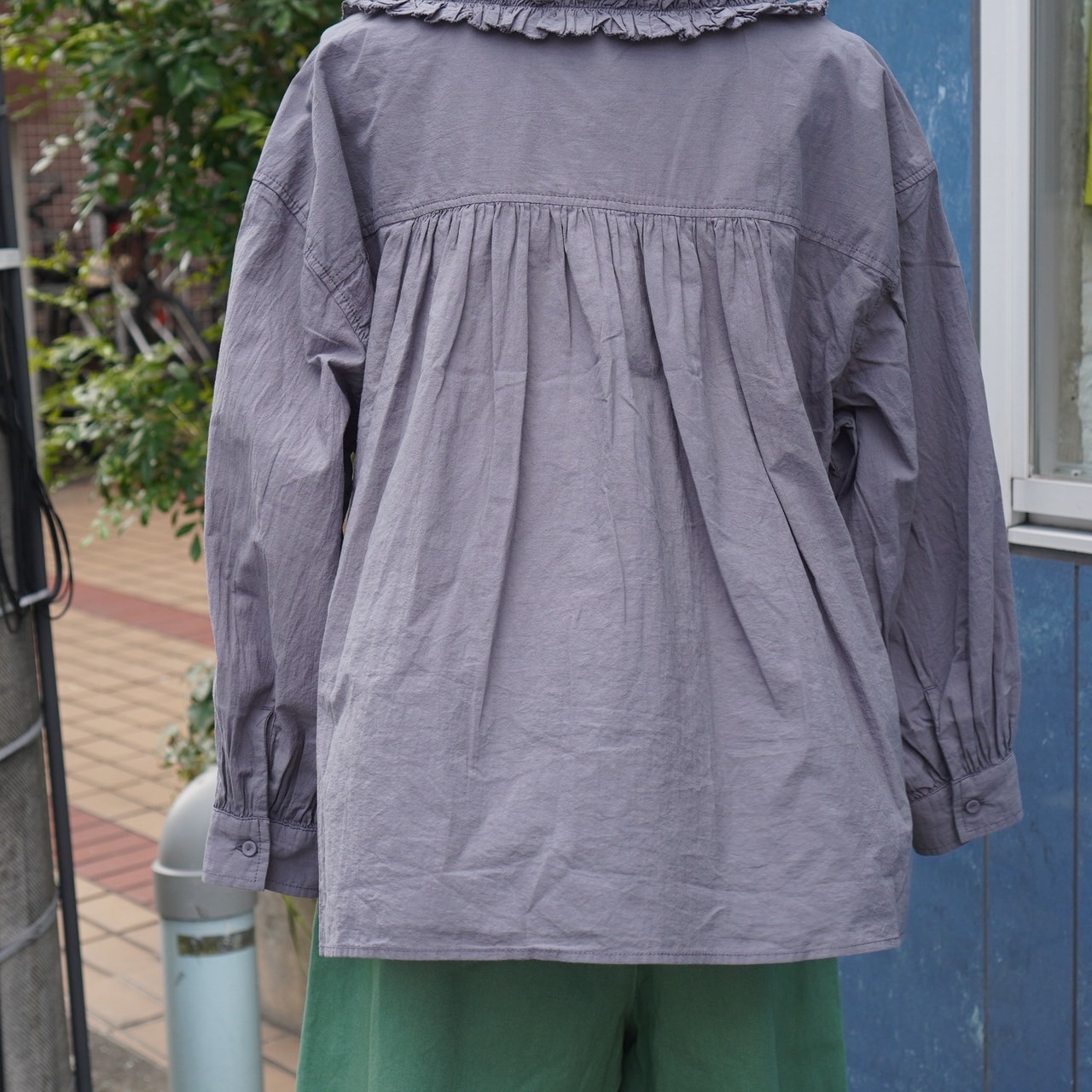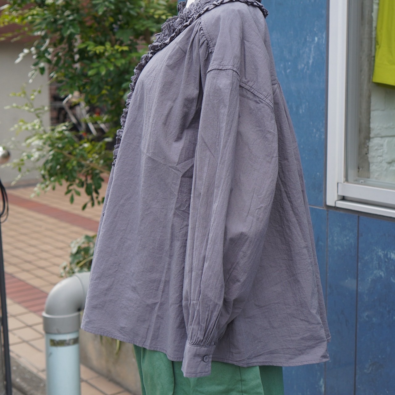 ナチュラルな素材感と落ち着いたシルエットに、フリルが大人かわいいブラウス。ふんわりと軽く、薄手のコットン生地でやさしい肌触りが特徴です。フェミニンでありながらもカジュアルに着こなせる一着。一枚で着るのはもちろん、インナーにタートルを重ねたり、羽織りとしても◎季節を問わず心地よく着用いただけます。