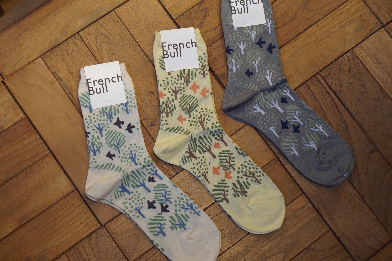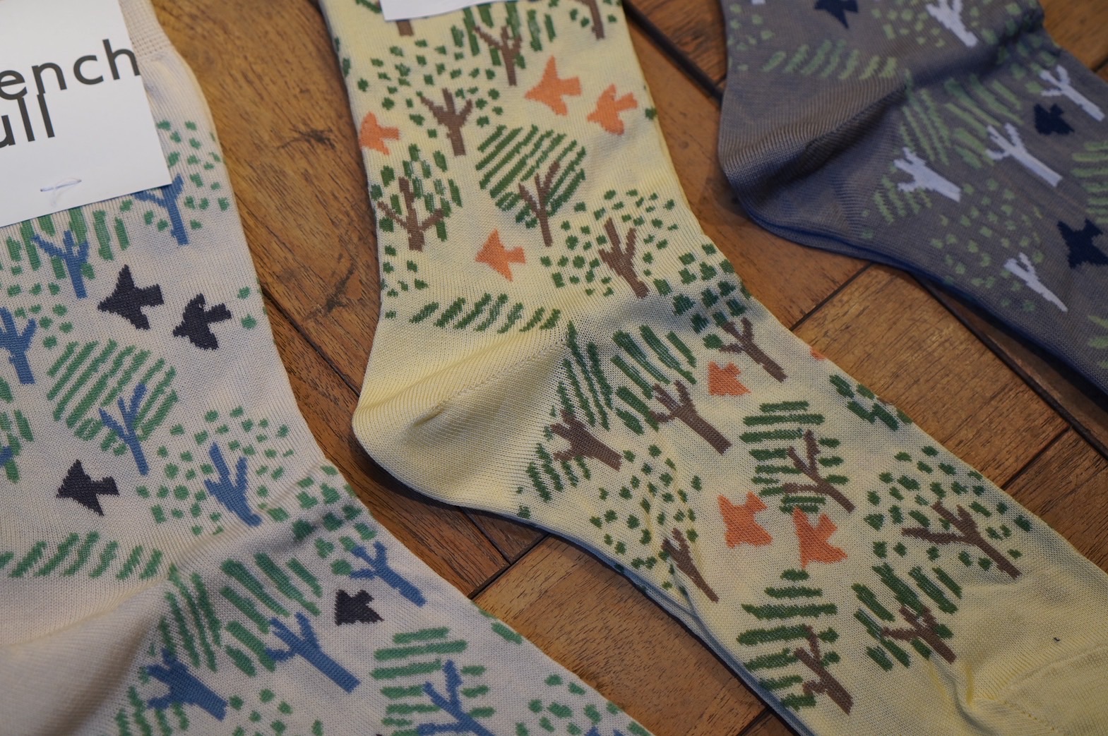 季節を越えて旅する渡り鳥と森をイメージしたソックスです。柔らかい配色がコーディネートしやすい1足。ボトムスの裾から覗く姿がキュートです。