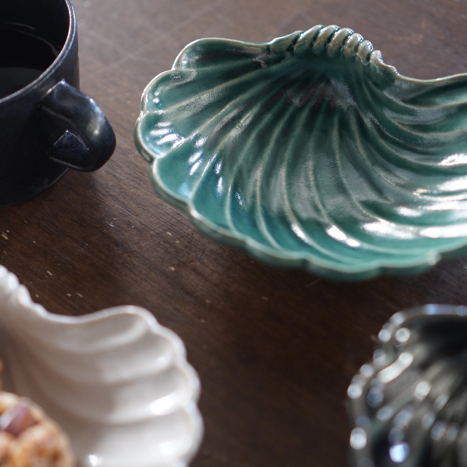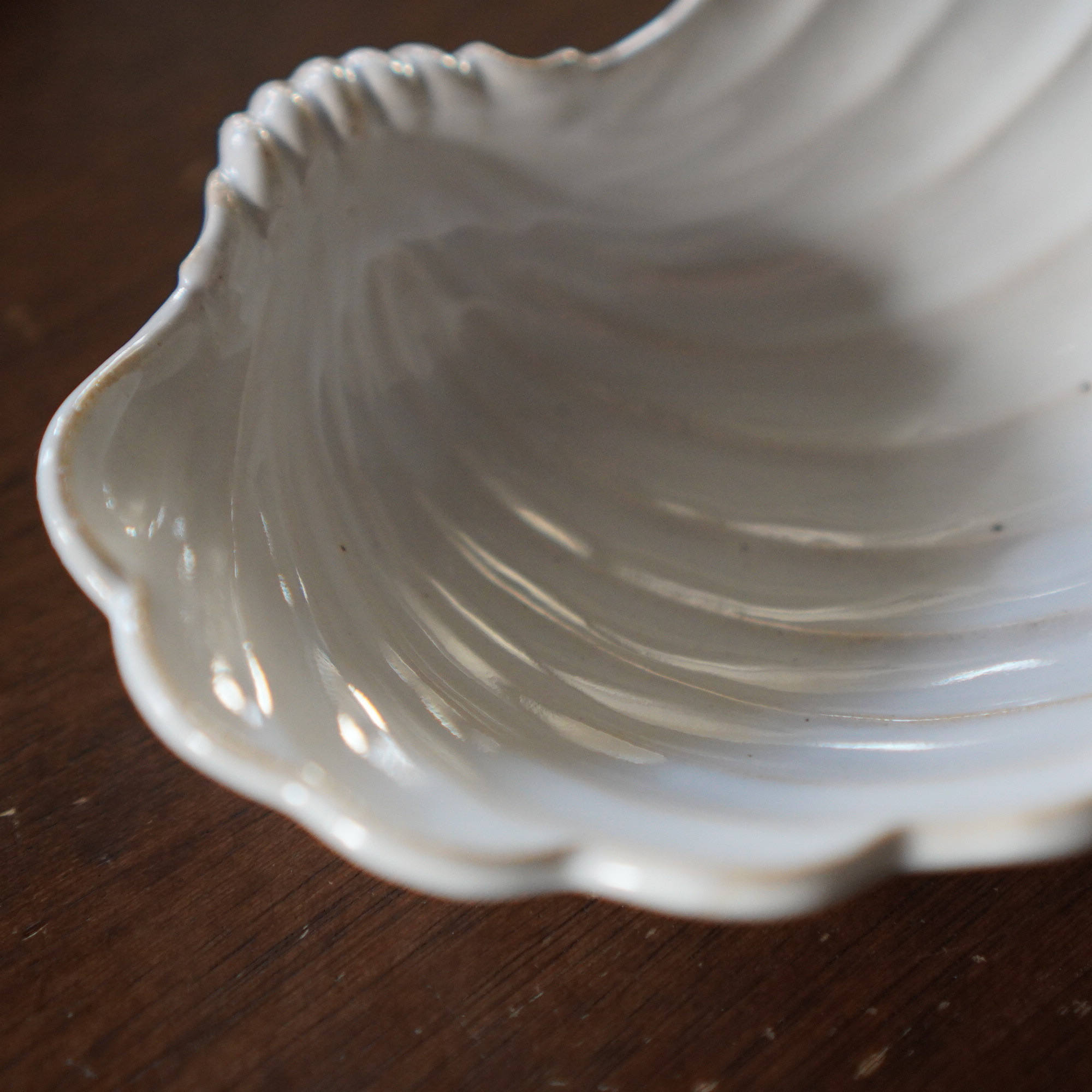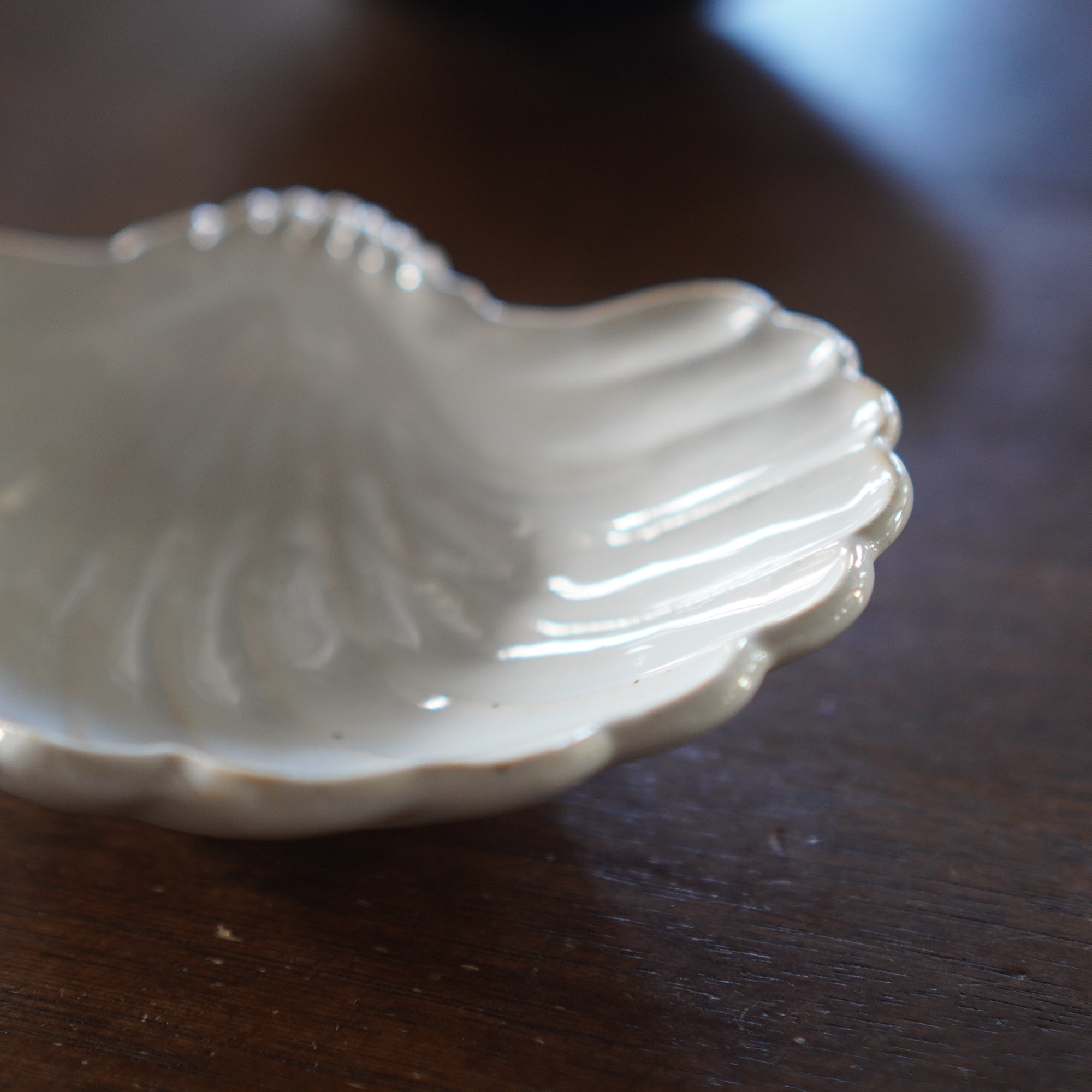 貝殻をモチーフにしたユニークなデザインのボウル。表も裏も細部まで貝殻の柔らかく立体的なフォルムを丁寧に表現しており、どの角度から眺めても楽しめるのが魅力です。先端の部分には、アンティークを思わせる上品な装飾が施されており、食卓に華やぎを添えてくれます。重ねた時に、すっきり収納できるのも嬉しいポイント!和え物やおひたしなども綺麗にまとまり、貝殻のラインが料理を引き立てます。もちろん、フルーツやお菓子などの盛り付けにもおすすめの一品です。