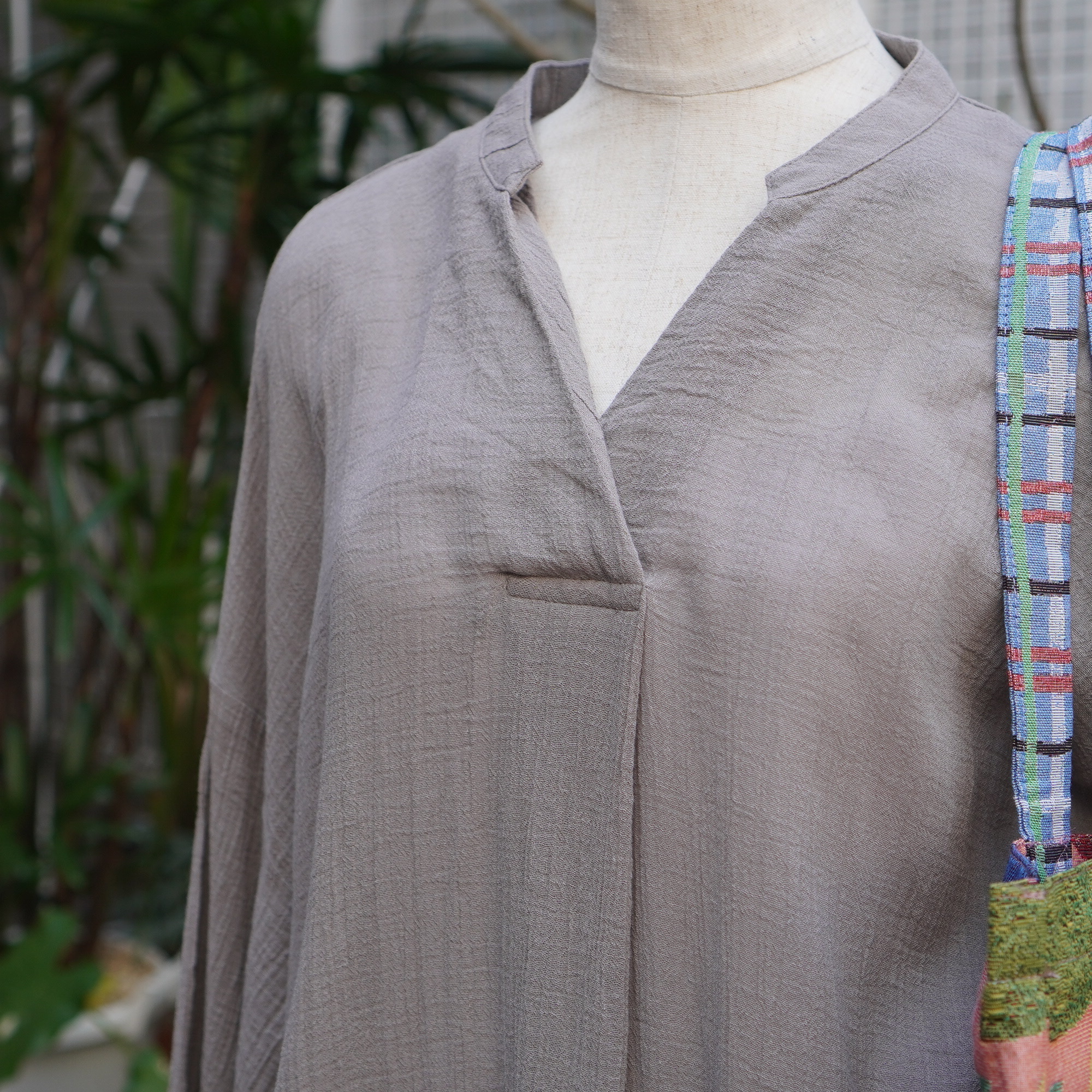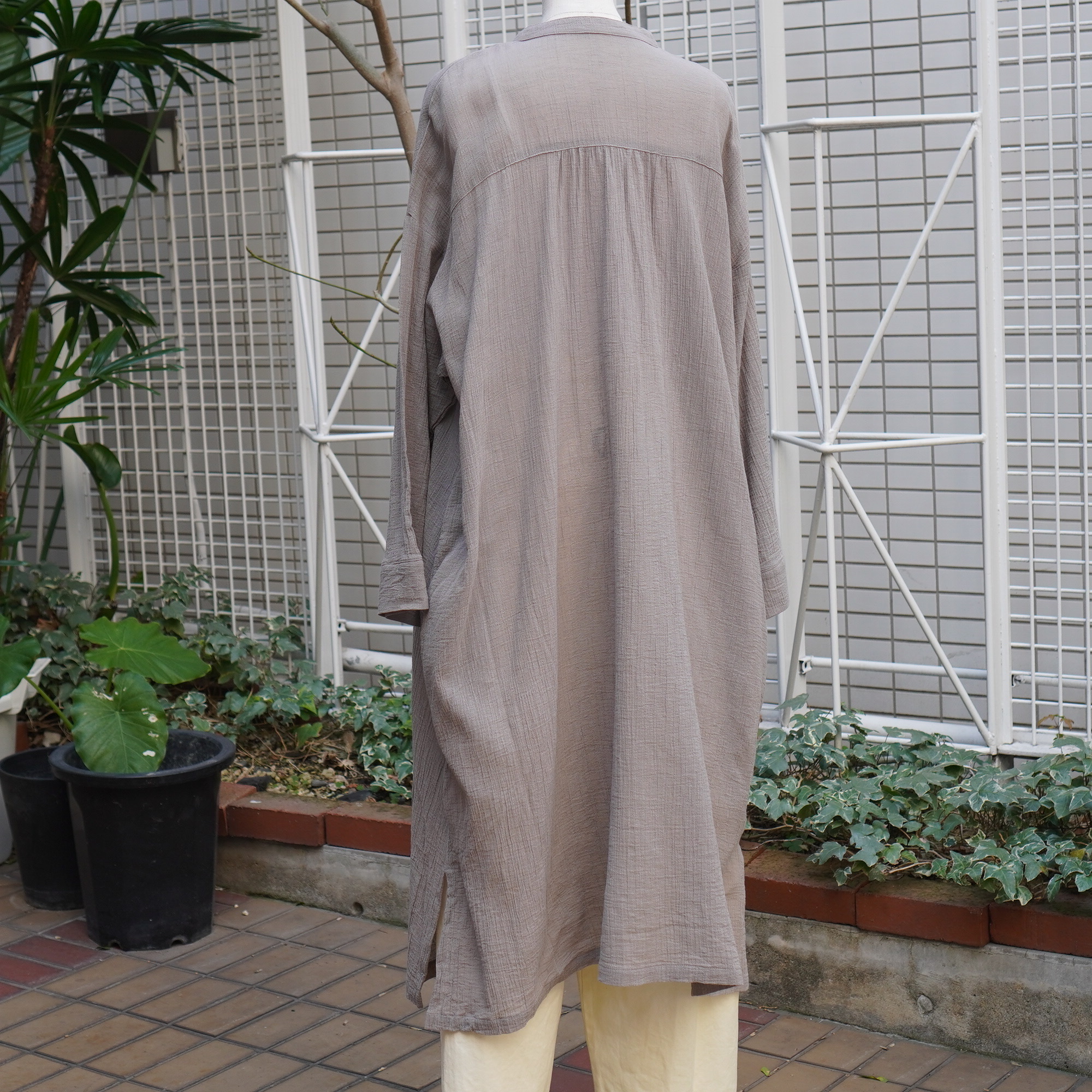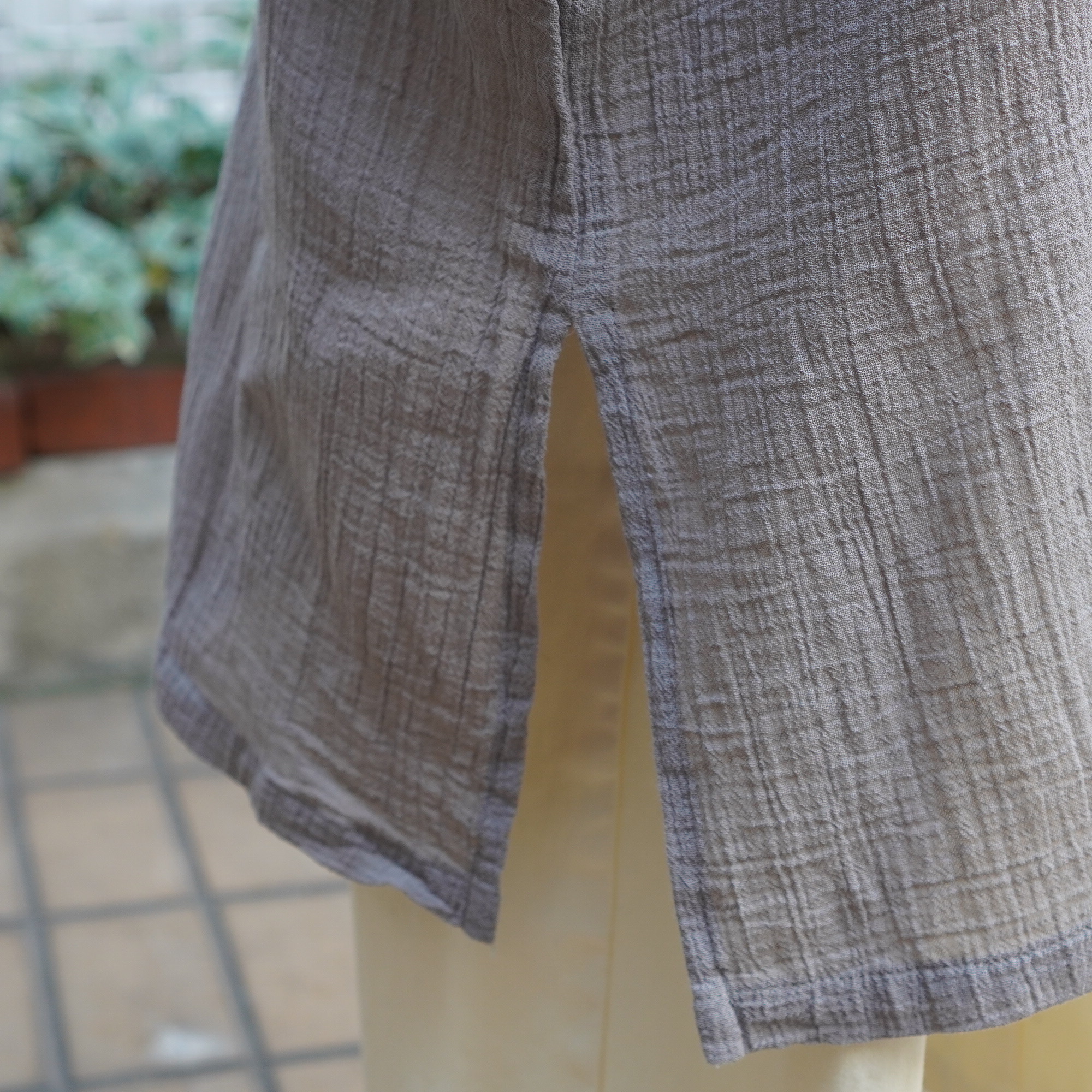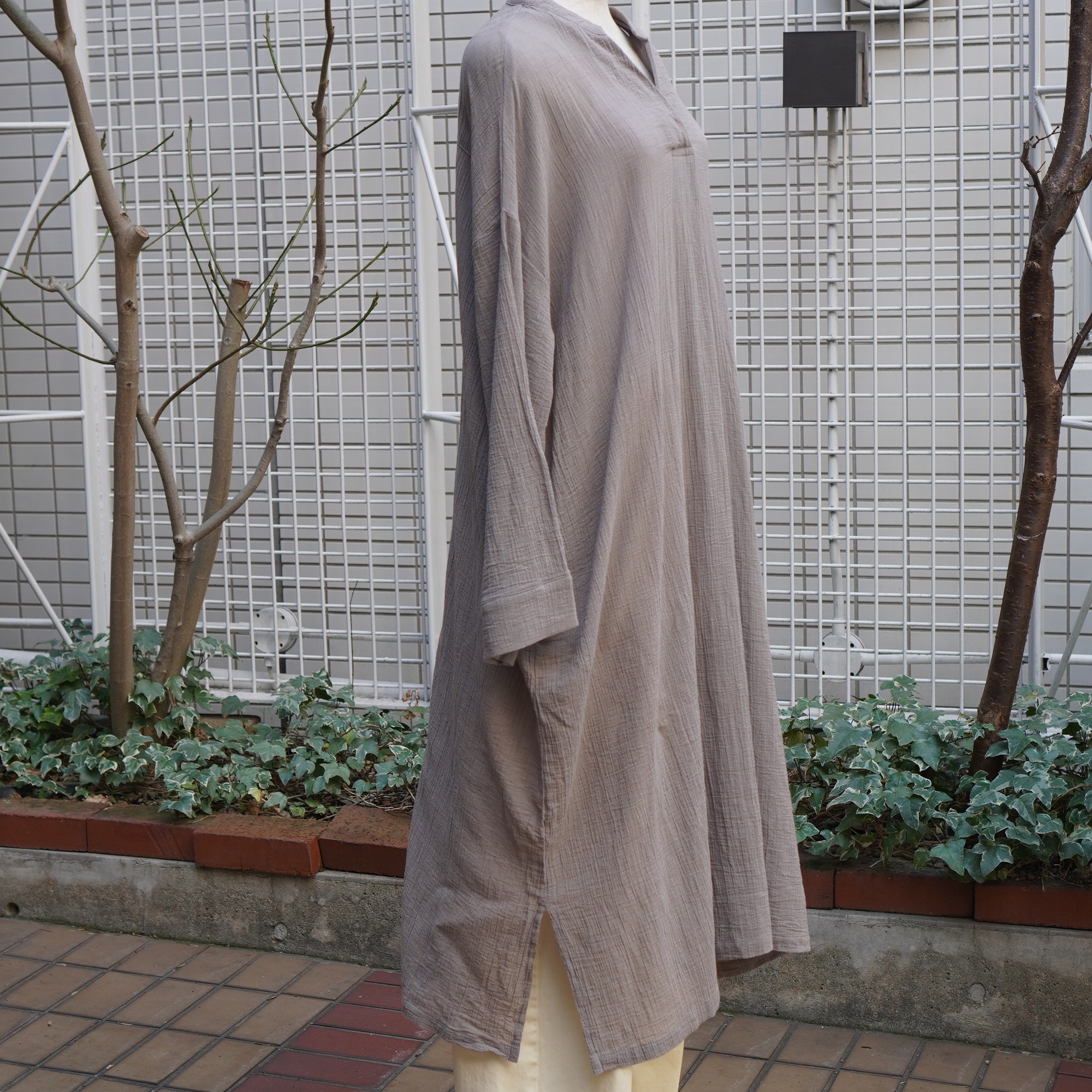 暑い夏までさらっとした着こなしが出来る軽やかなワンピース。深めのキーネックや裾のスリットで抜け感のある雰囲気に。体のラインを拾わないシルエットで、デイリーコーデで活躍する一着。