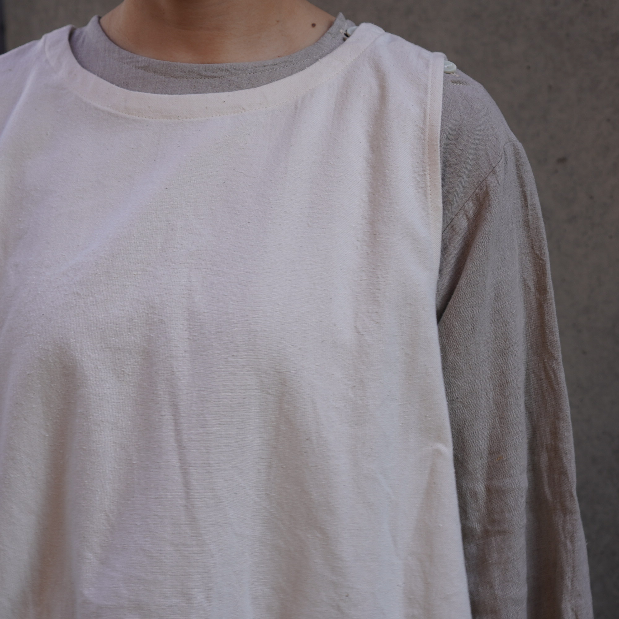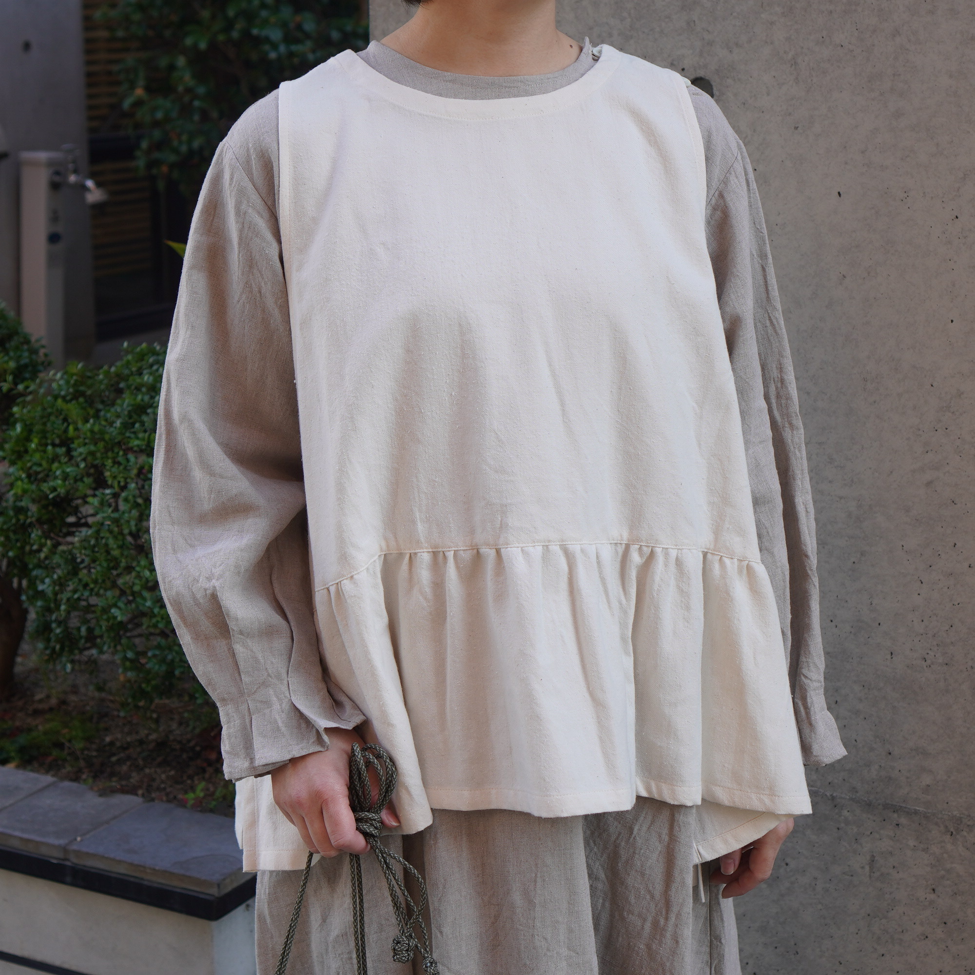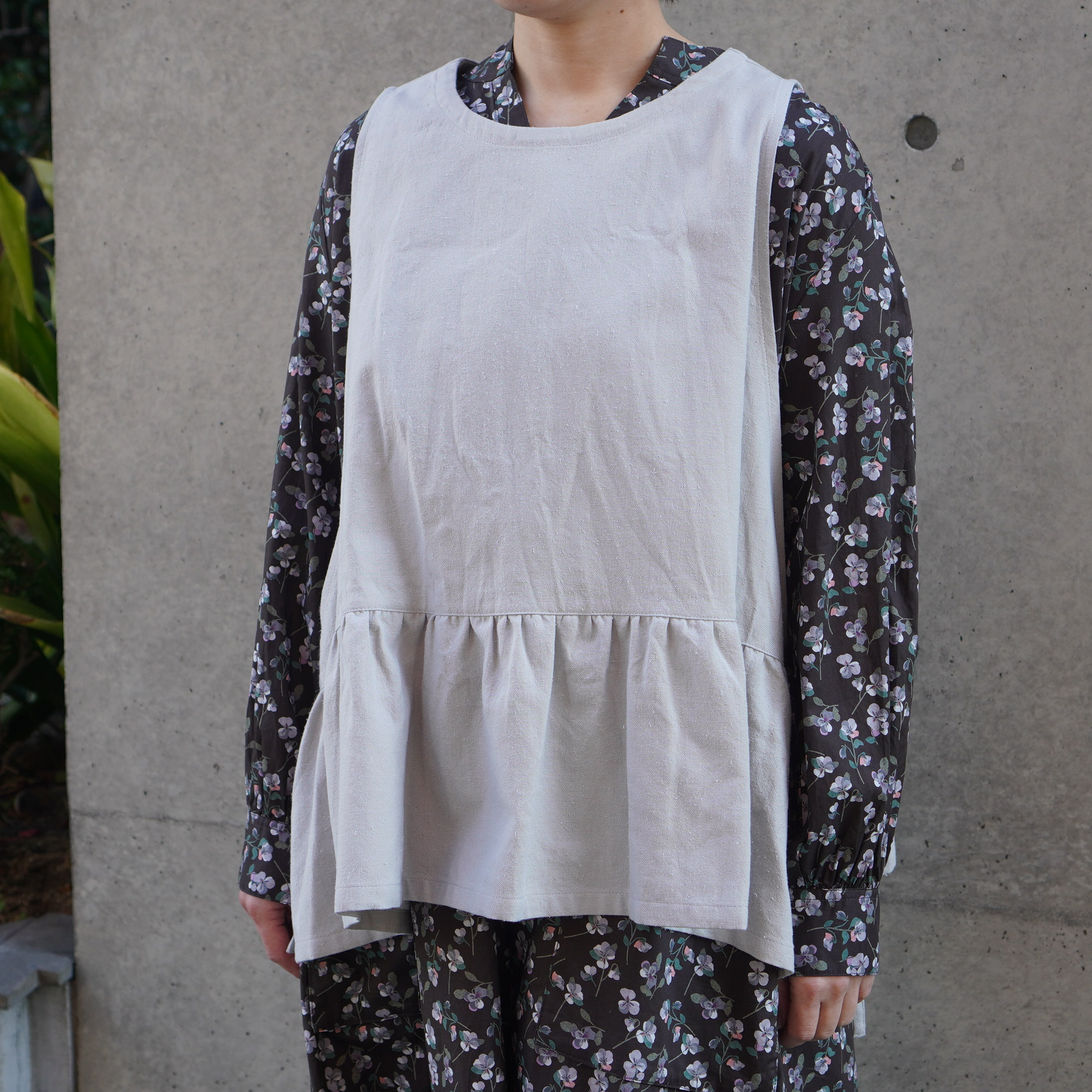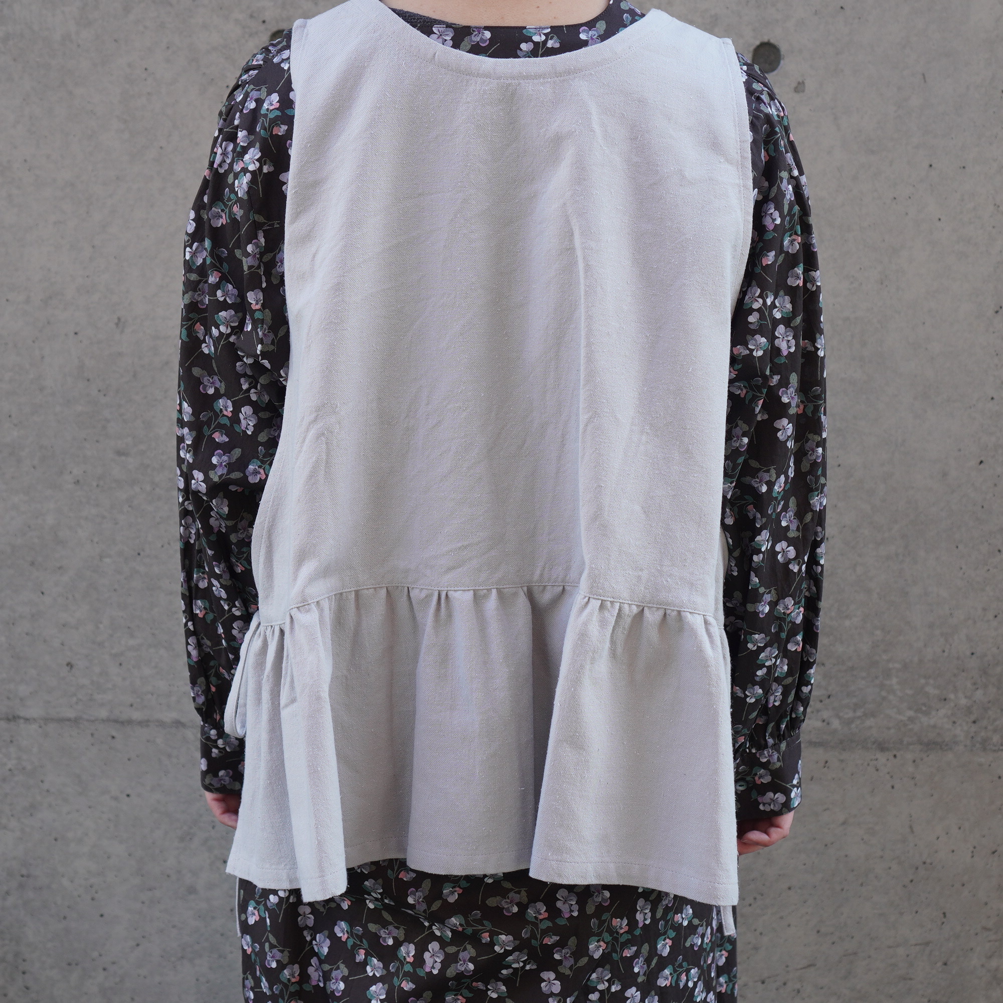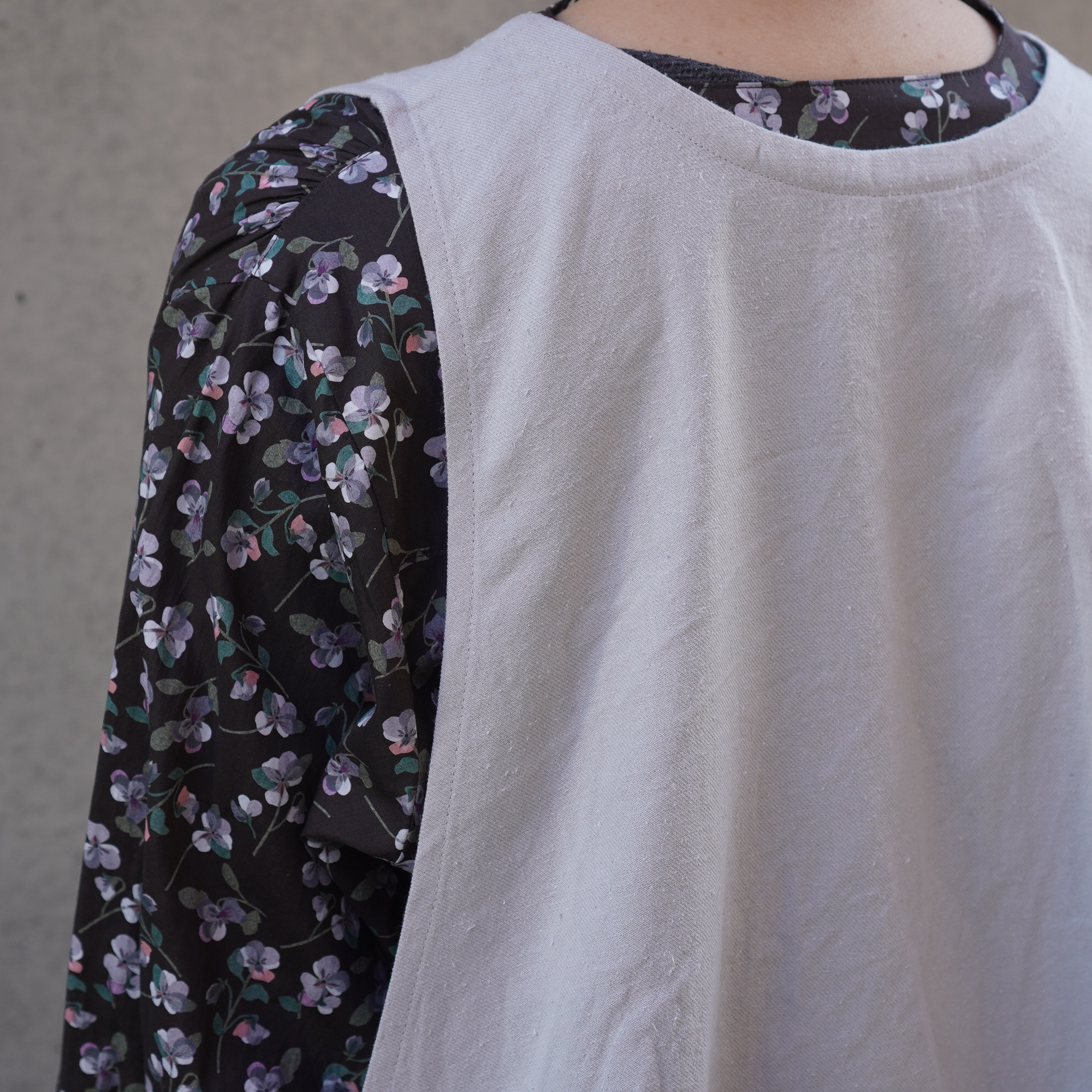 シルク混のしっとりとした柔らかな肌触りに、独特の凹凸感とシルクネップによる表面感が特徴のベストです。サイドで紐を結んでざっくりと被るだけでスタイリングが華やかに♩ウエスト切替えでギャザーが程よい甘さを演出してくれます。ゆったりとしたシルエットなので、ワンピースなど様々なお洋服と合わせてレイヤードスタイルをお楽しみ頂けます。