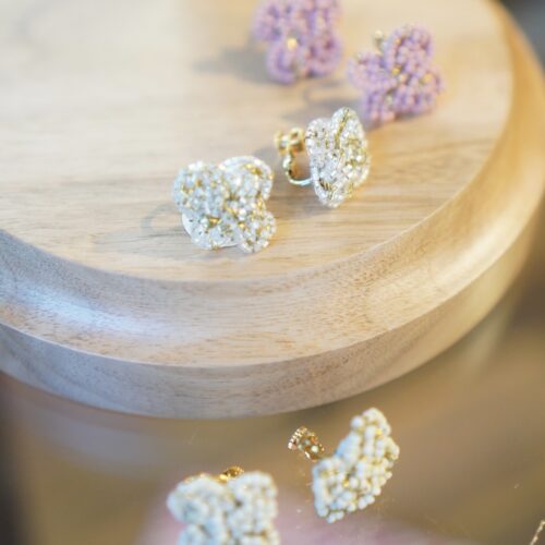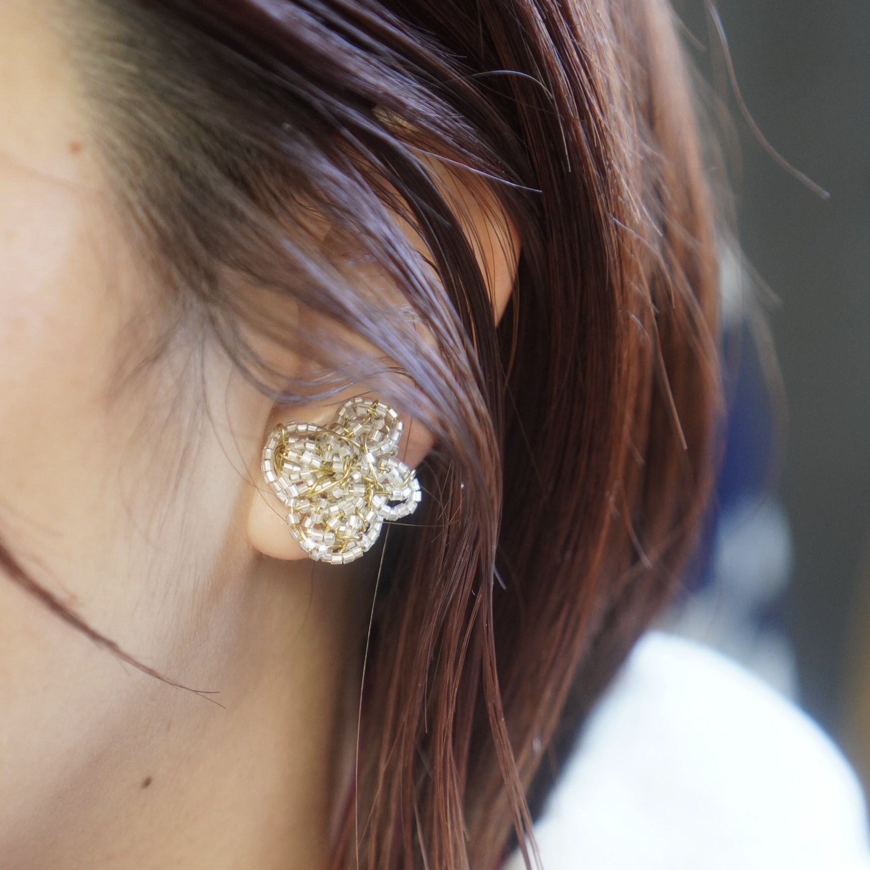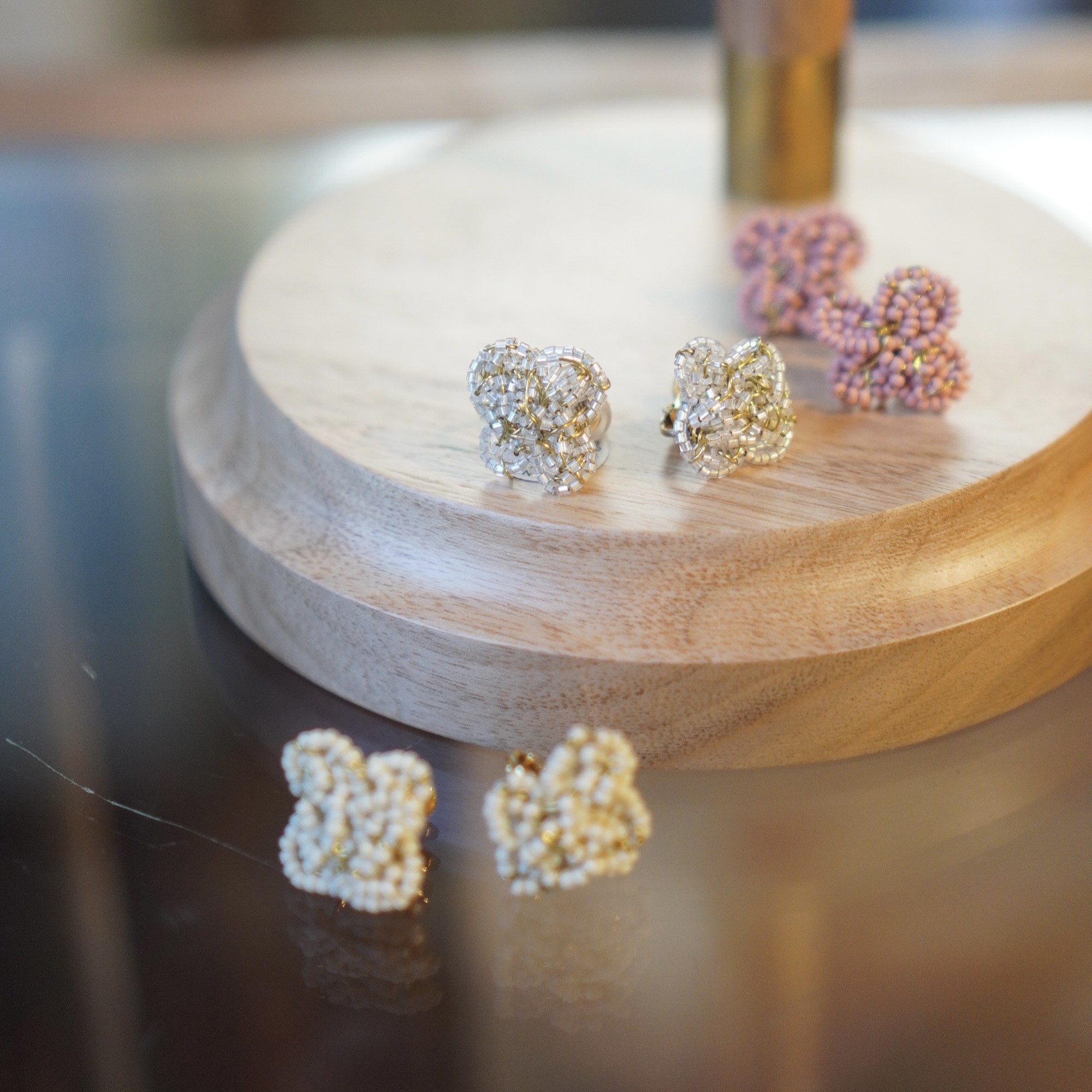 真鍮とビーズのアクセサリー『Fog(フォグ)』。野の花のように可憐で美しい「noka」シリーズは、自然の中に小さく咲く、かわいらしいお花がそのままアクセサリーになったよう。身に着けるだけで心ときめく耳飾りです♩