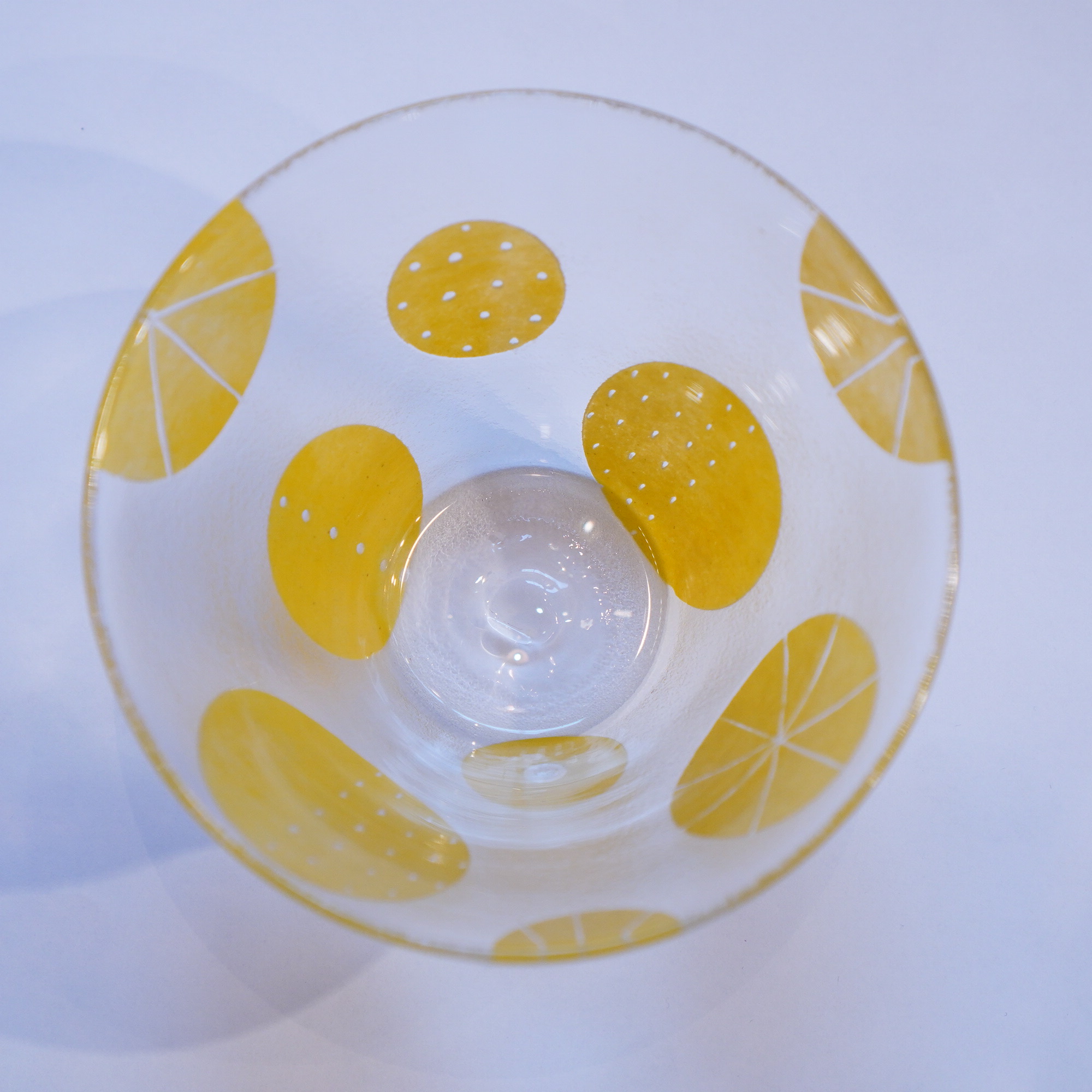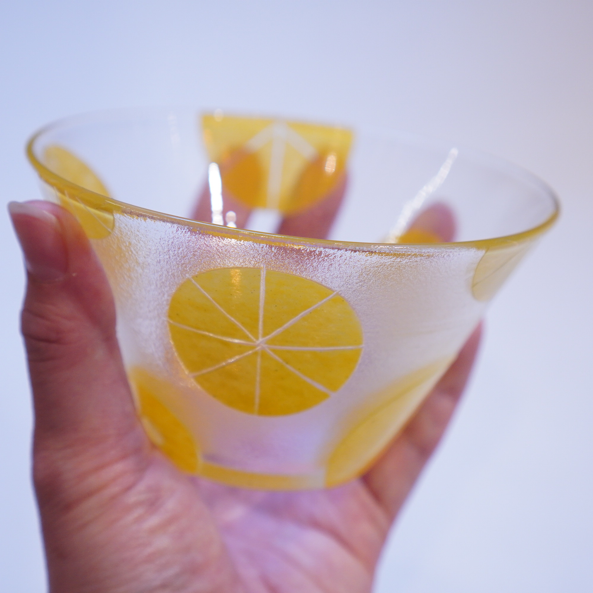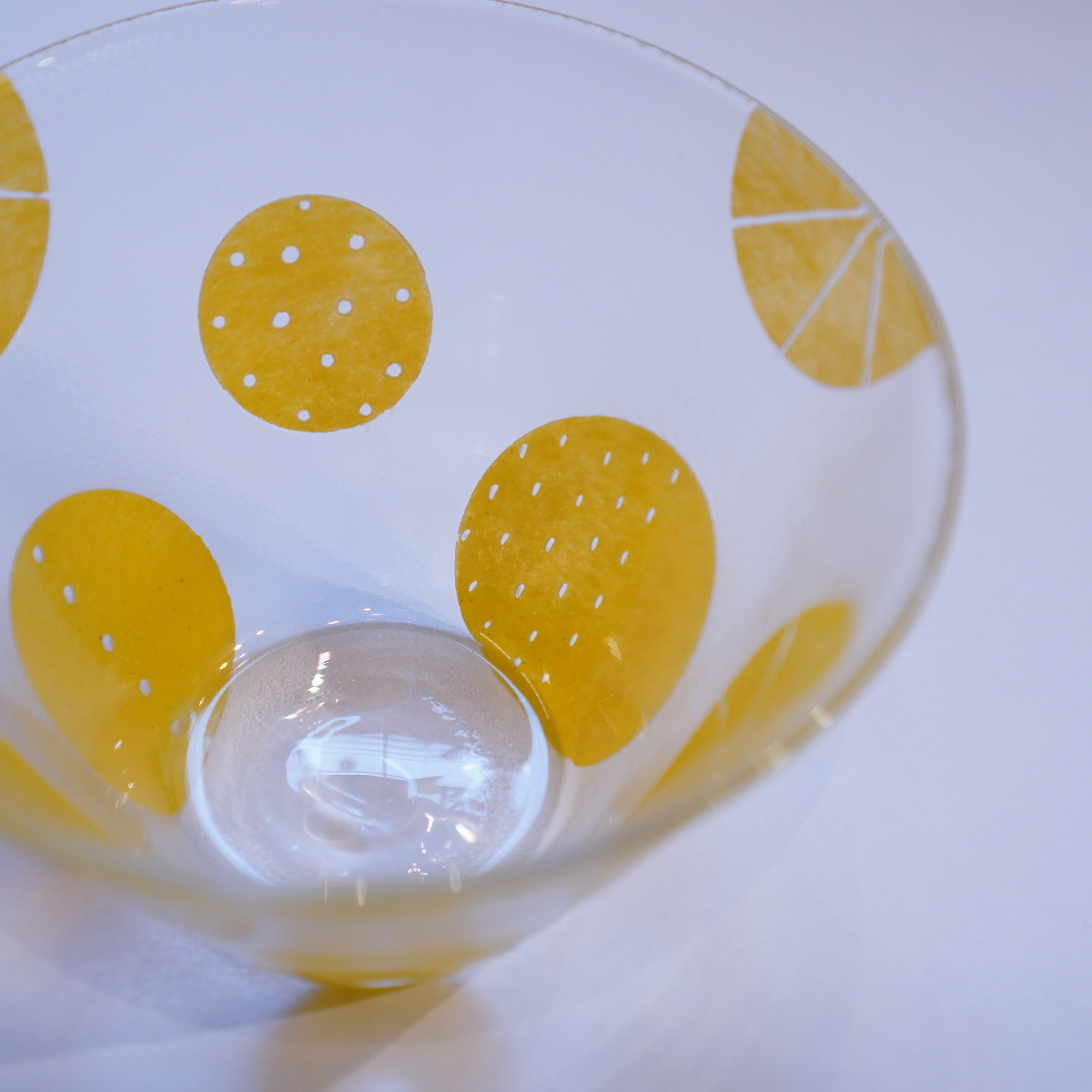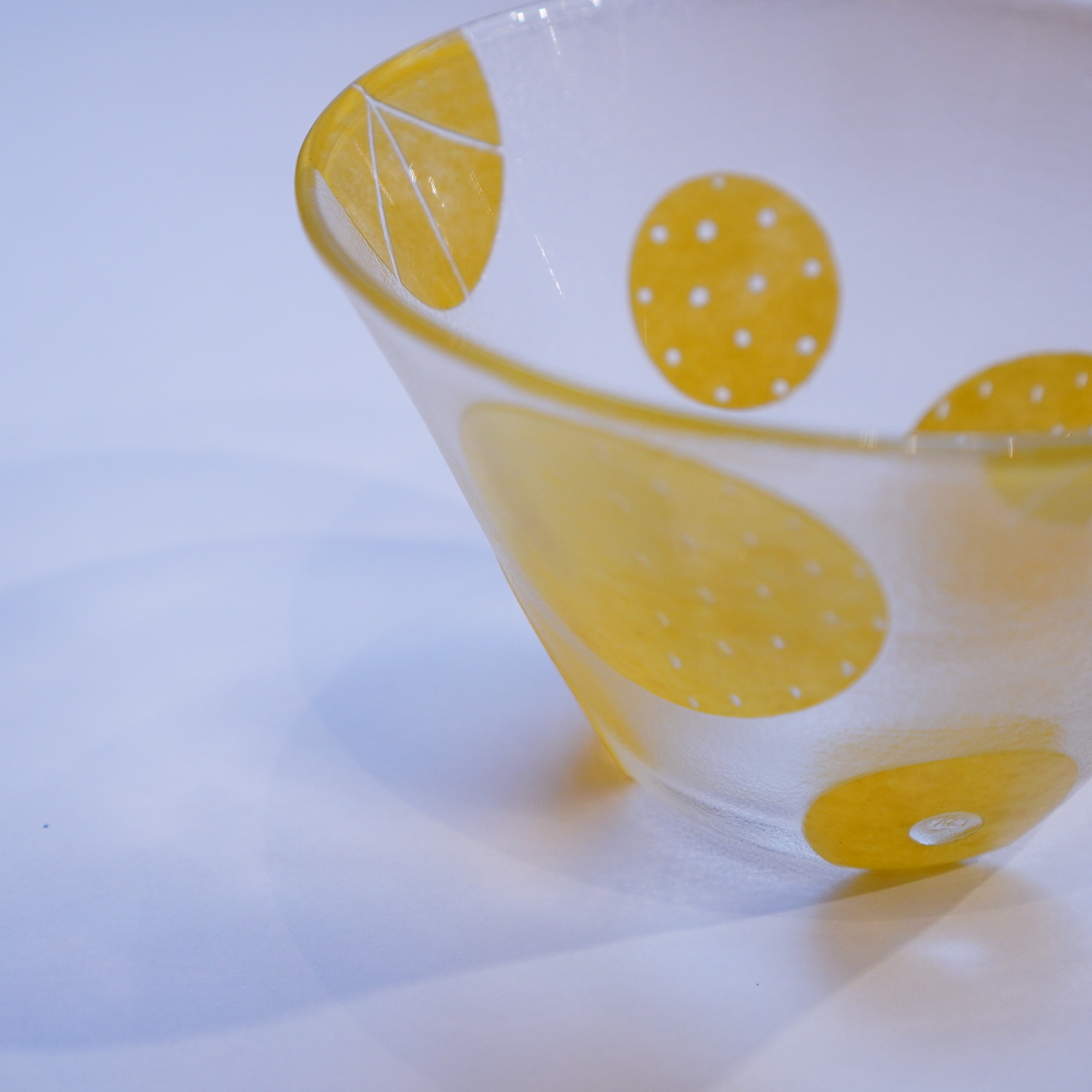 器を使うたびに、心躍るような瞬間を感じてほしいという想いを込めて、日々の暮らしで出逢う、キレイな街並みやアートからインスピレーションを得て制作された作品。吹きガラスでひとつひとつ丁寧につくられ、サンドブラストで時間をかけて削って生まれる細やかな模様は、凛と美しく唯一無二の1点物です。光を通す度に変わる表情にもご注目ください。