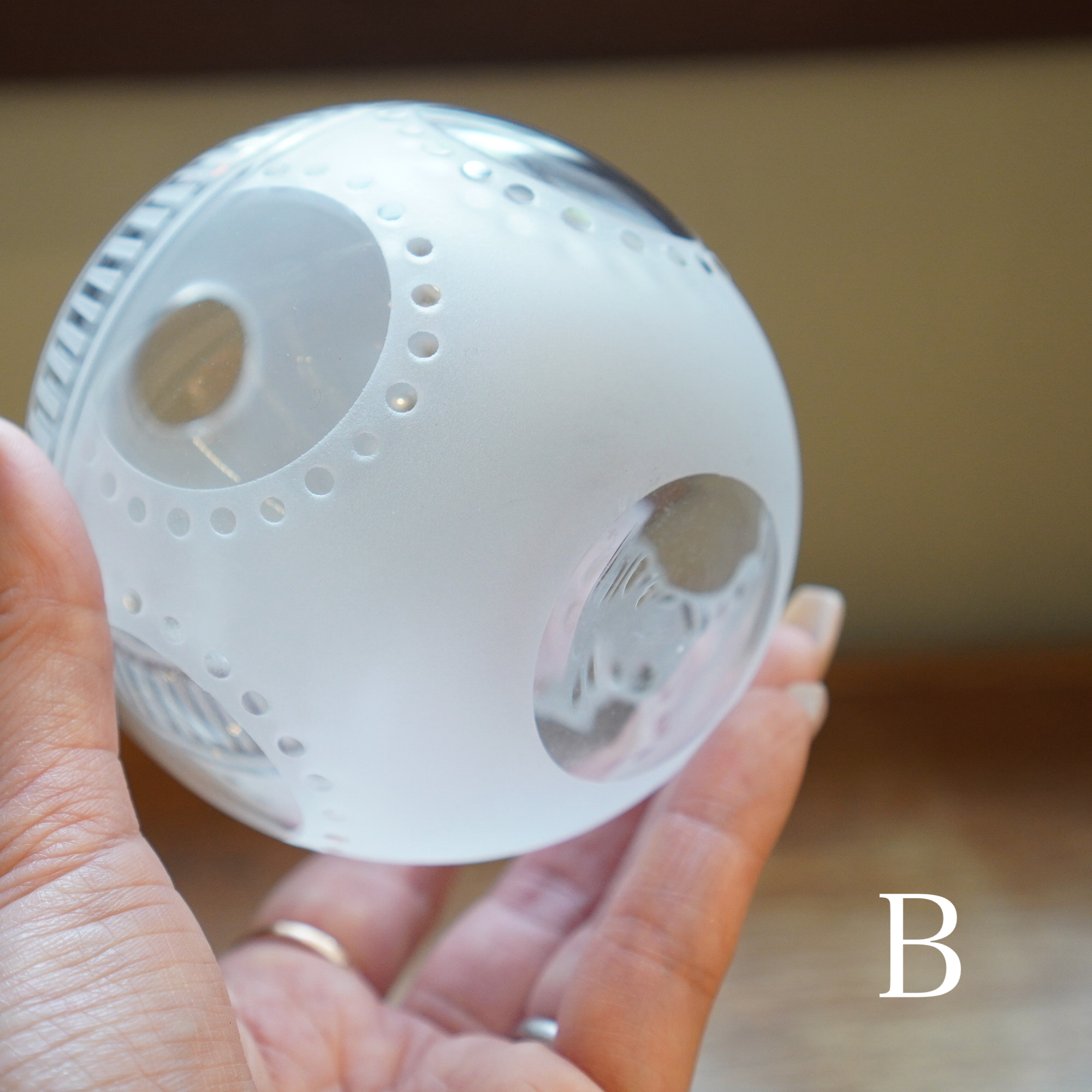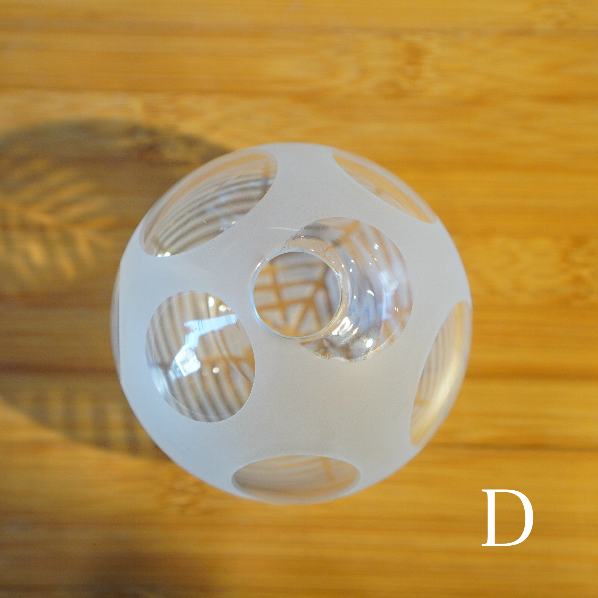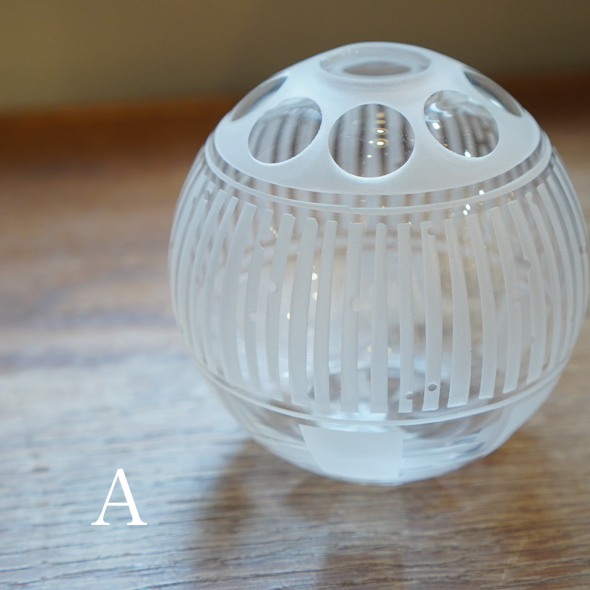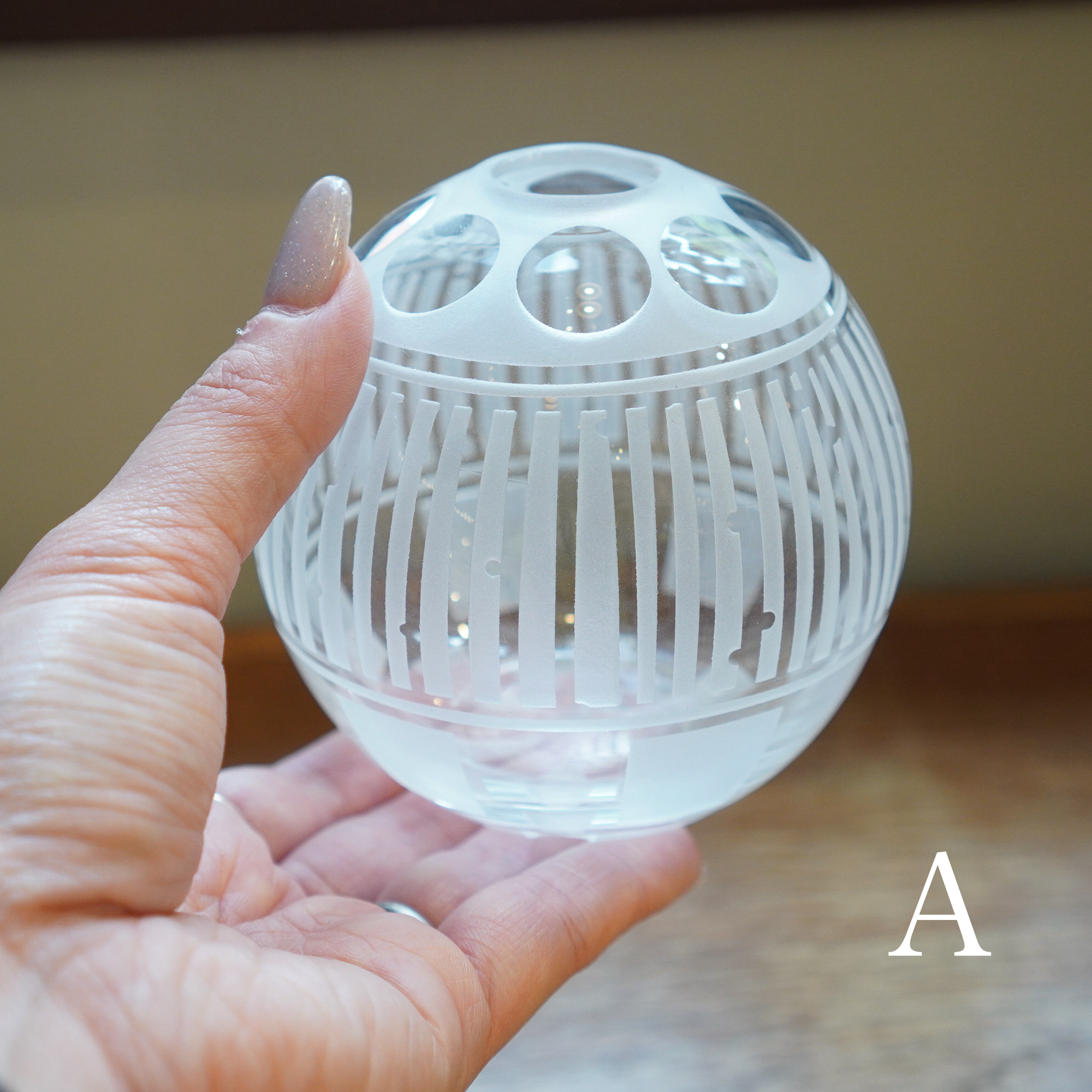 器を使うたびに、心躍るような瞬間を感じてほしいという想いを込めて、日々の暮らしで出逢う、キレイな街並みやアートからインスピレーションを得て制作された作品。吹きガラスでひとつひとつ丁寧につくられ、サンドブラストで時間をかけて削って生まれる細やかな模様は、凛と美しく唯一無二の1点物です。光を通す度に変わる表情にもご注目ください。