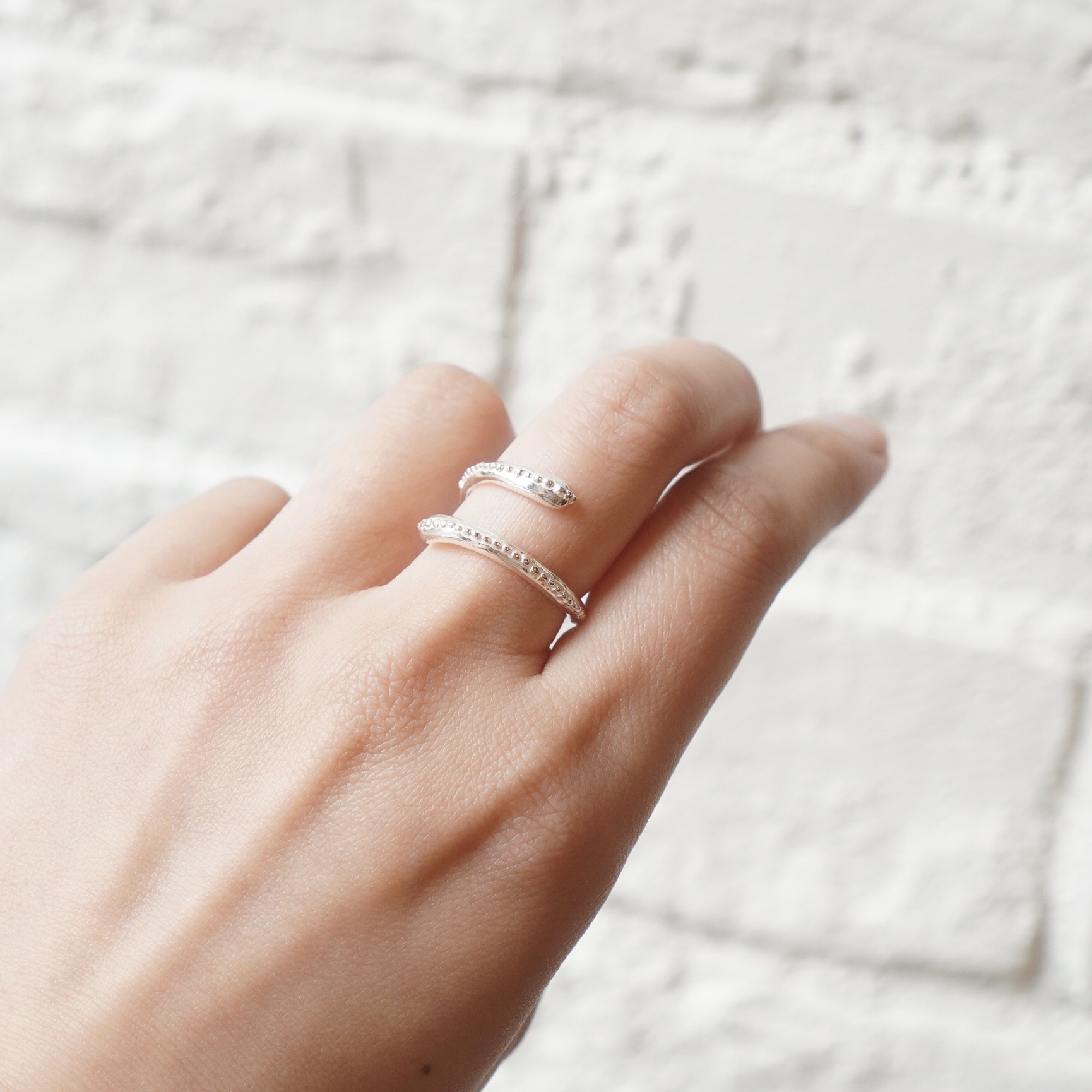 まわるように列を成す銀の粒が美しく、移ろいゆく季節や月日、つながり巡る様子をイメージしたシリーズ。シルバーならではの艶やかさ、潤みのあるぽってりとした姿は、風格と品位を感じるデザインです。