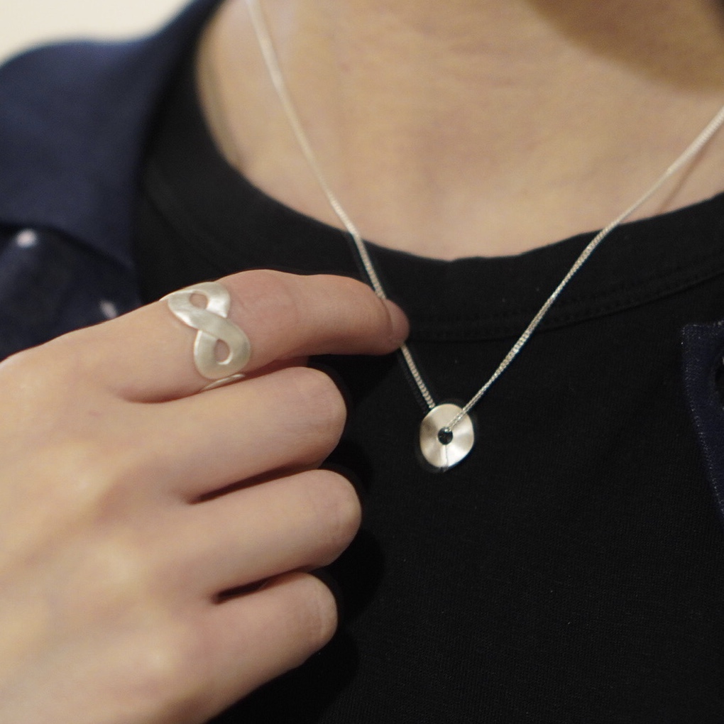 - erpetually(永久)をイメージした終点のない一筆書きのシルエットが洗練された印象を与えるシリーズ。優しくソフトな輝きでまるで、素肌にすっと馴染みゆくよう…。大人の装いへと引き立てる大胆なフォルムに、薄く丁寧に磨かれたシルバーのマットな質感が際立ちます。